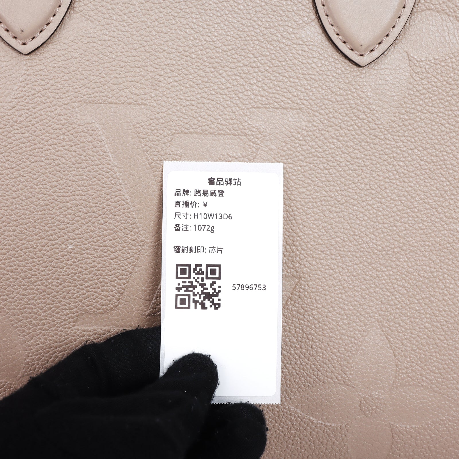 Pre-Owned Louis Vuitton Onthego MM Taupe Calfskin Shoulder Bag 57896753