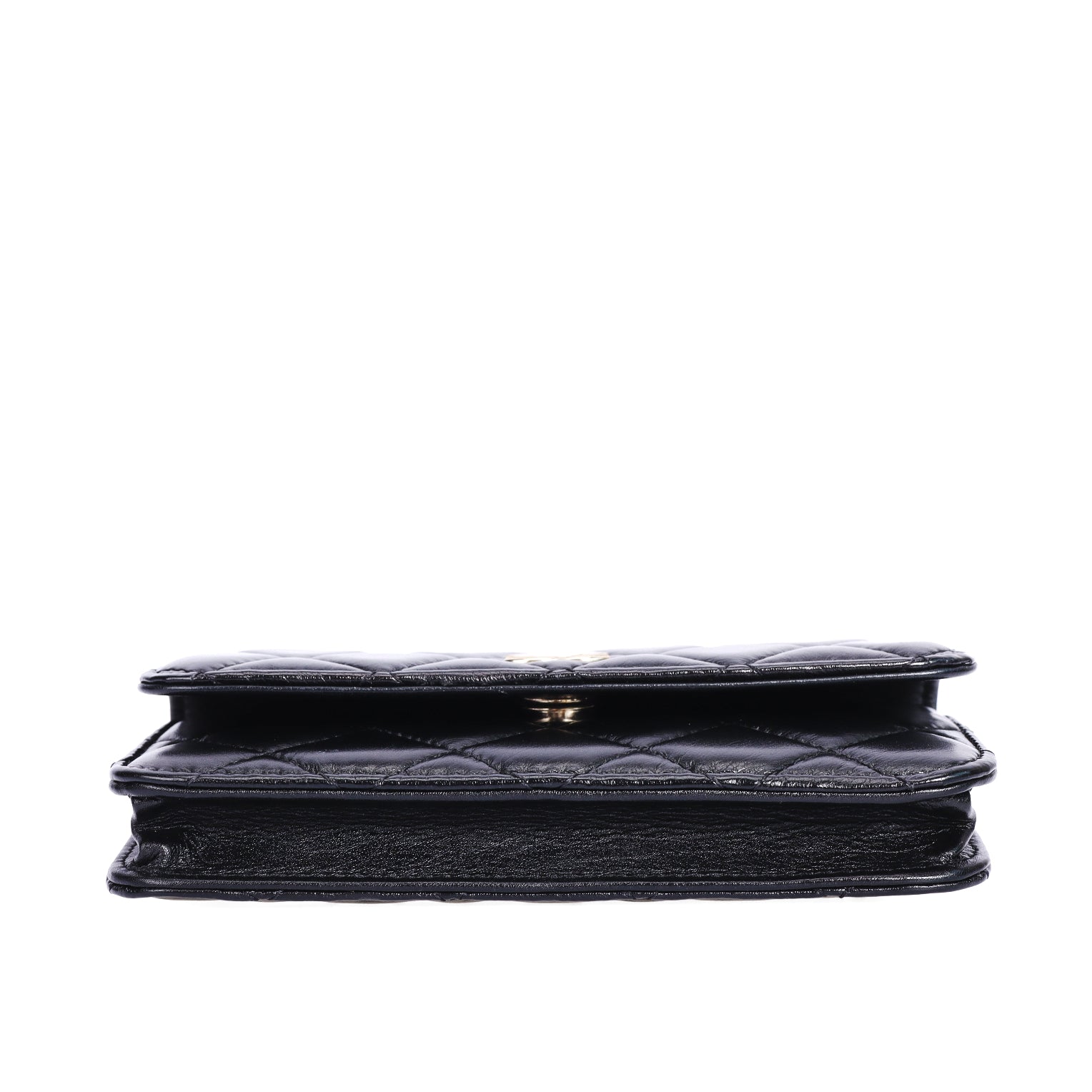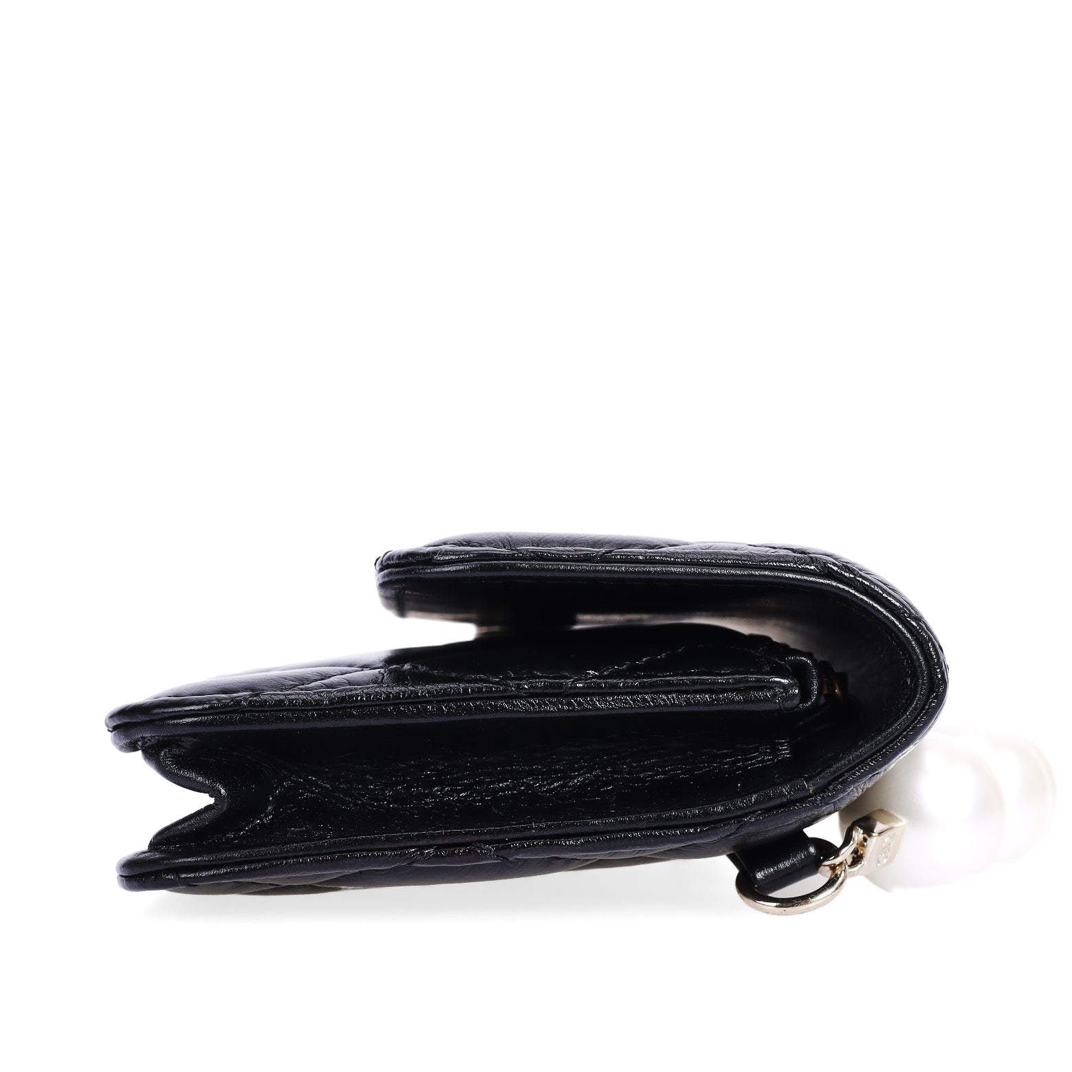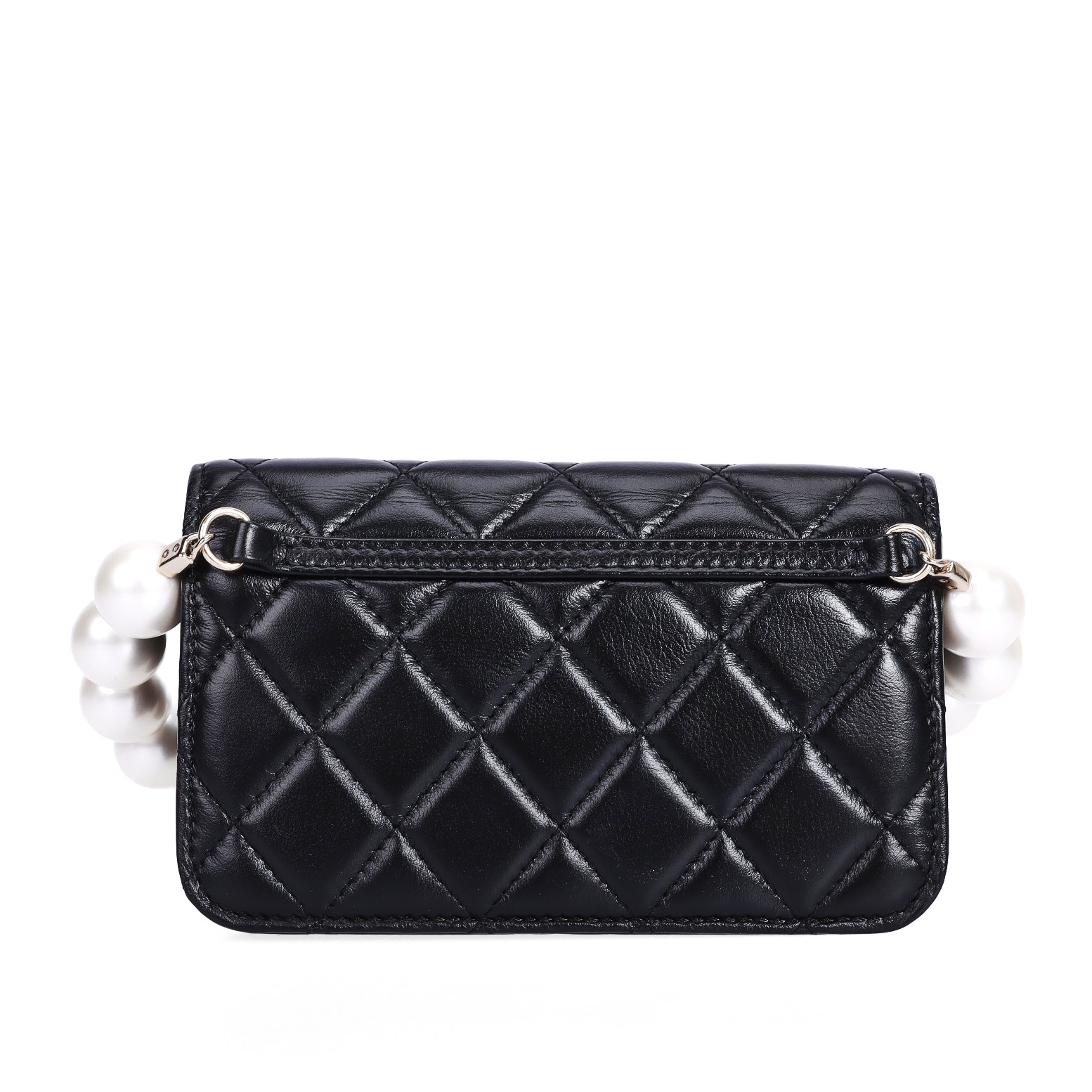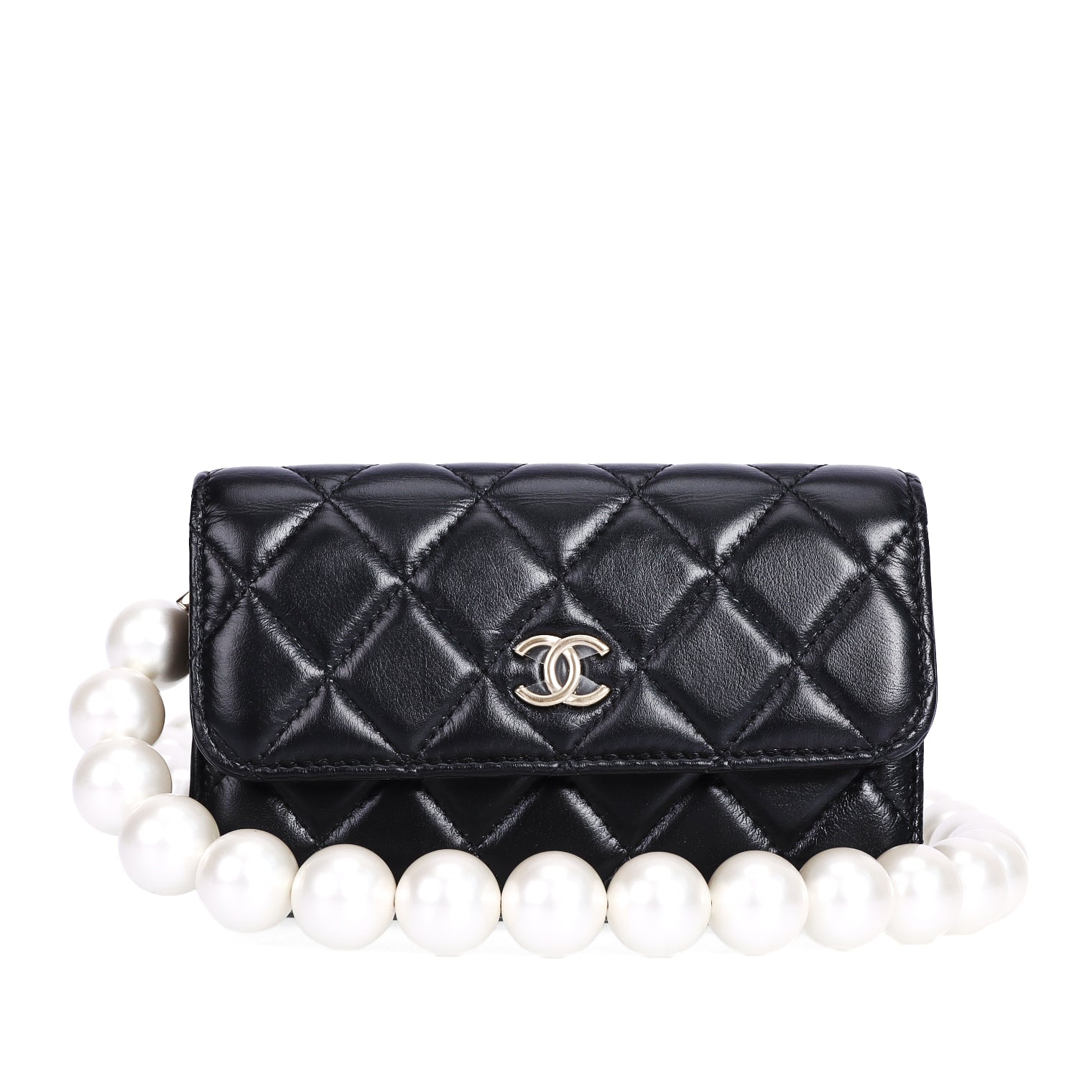 Pre-Owned Chanel Classic Quilted Pearl Handle Black Lambskin Leather Wallet on Chain 85862214