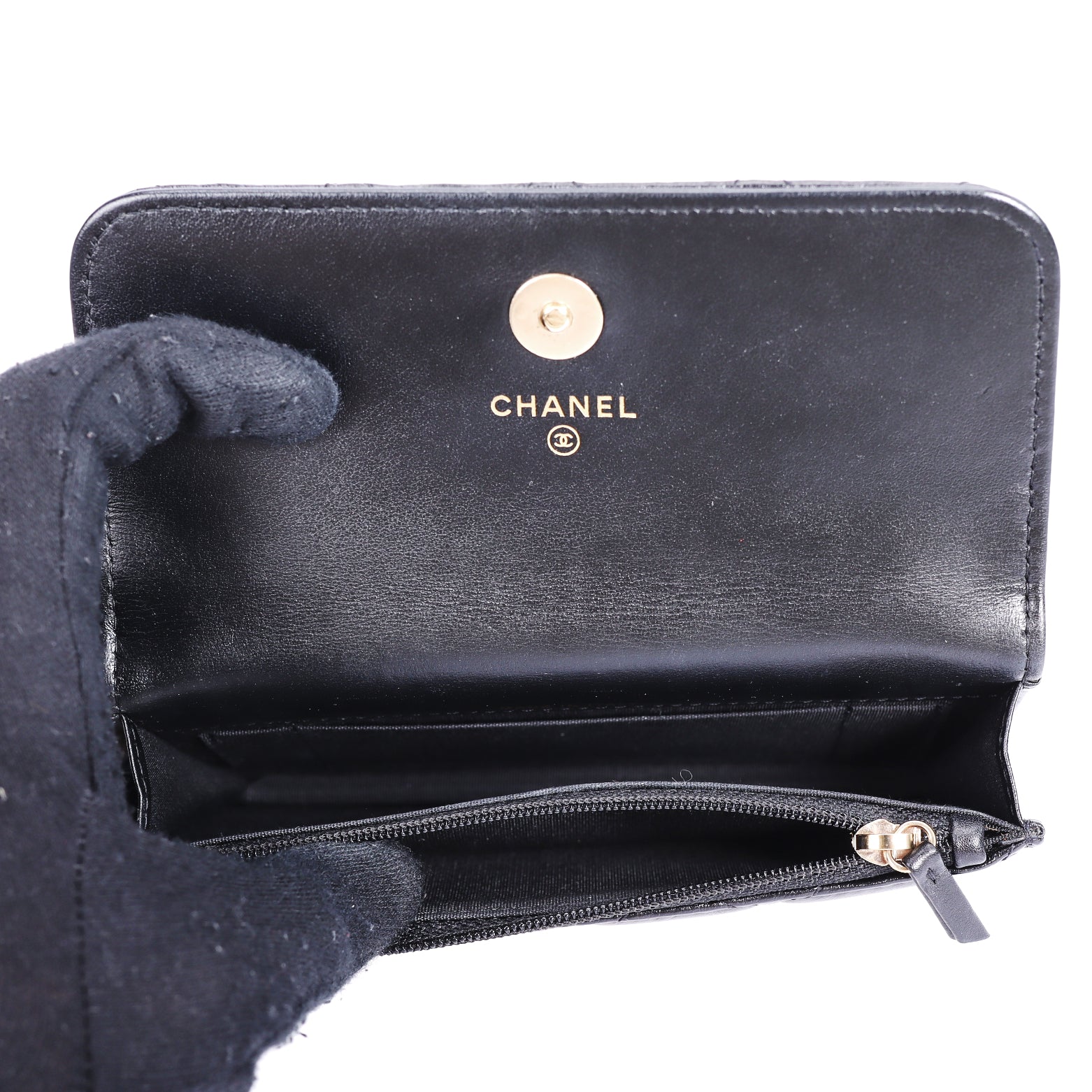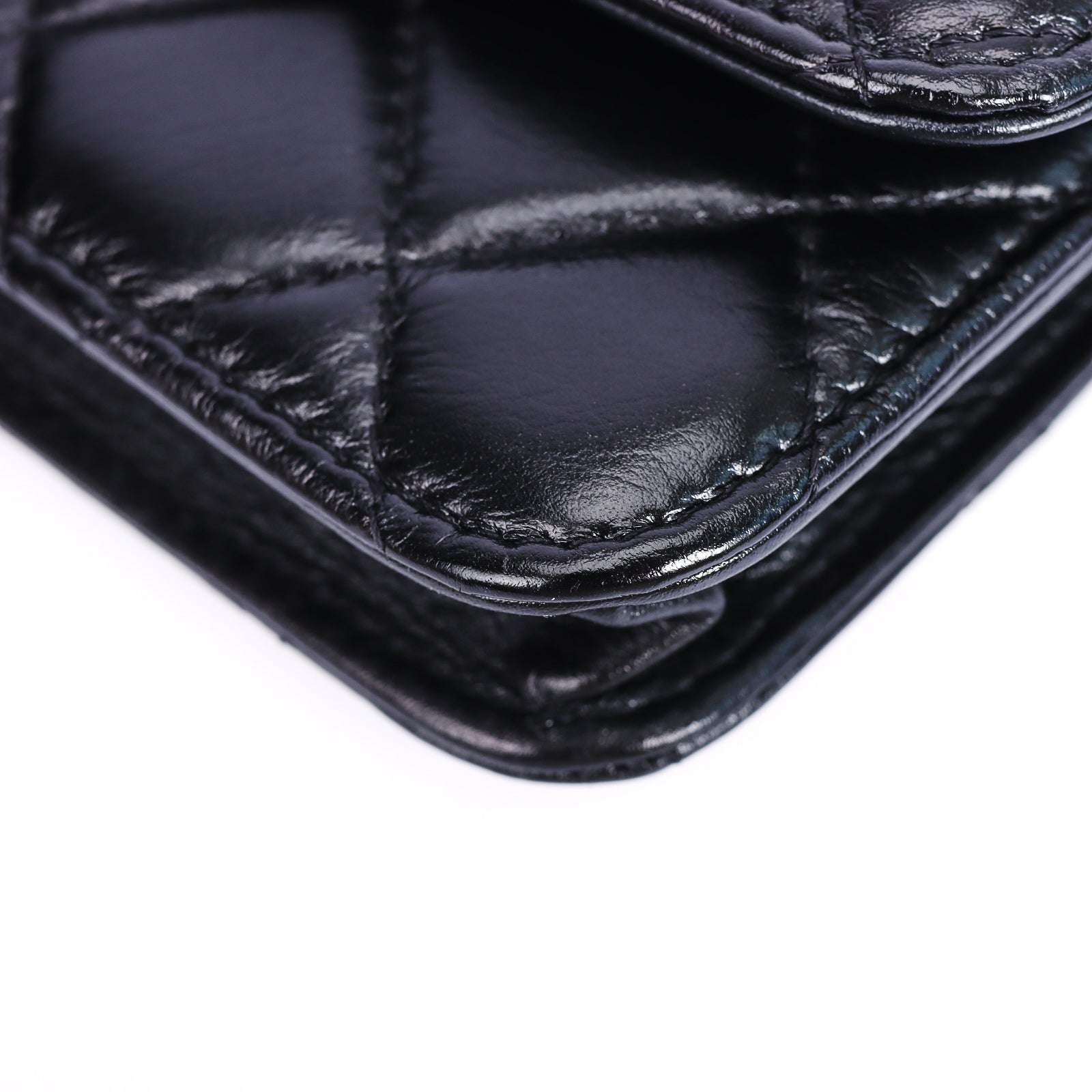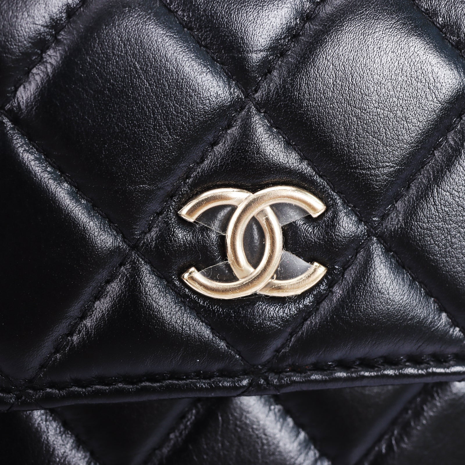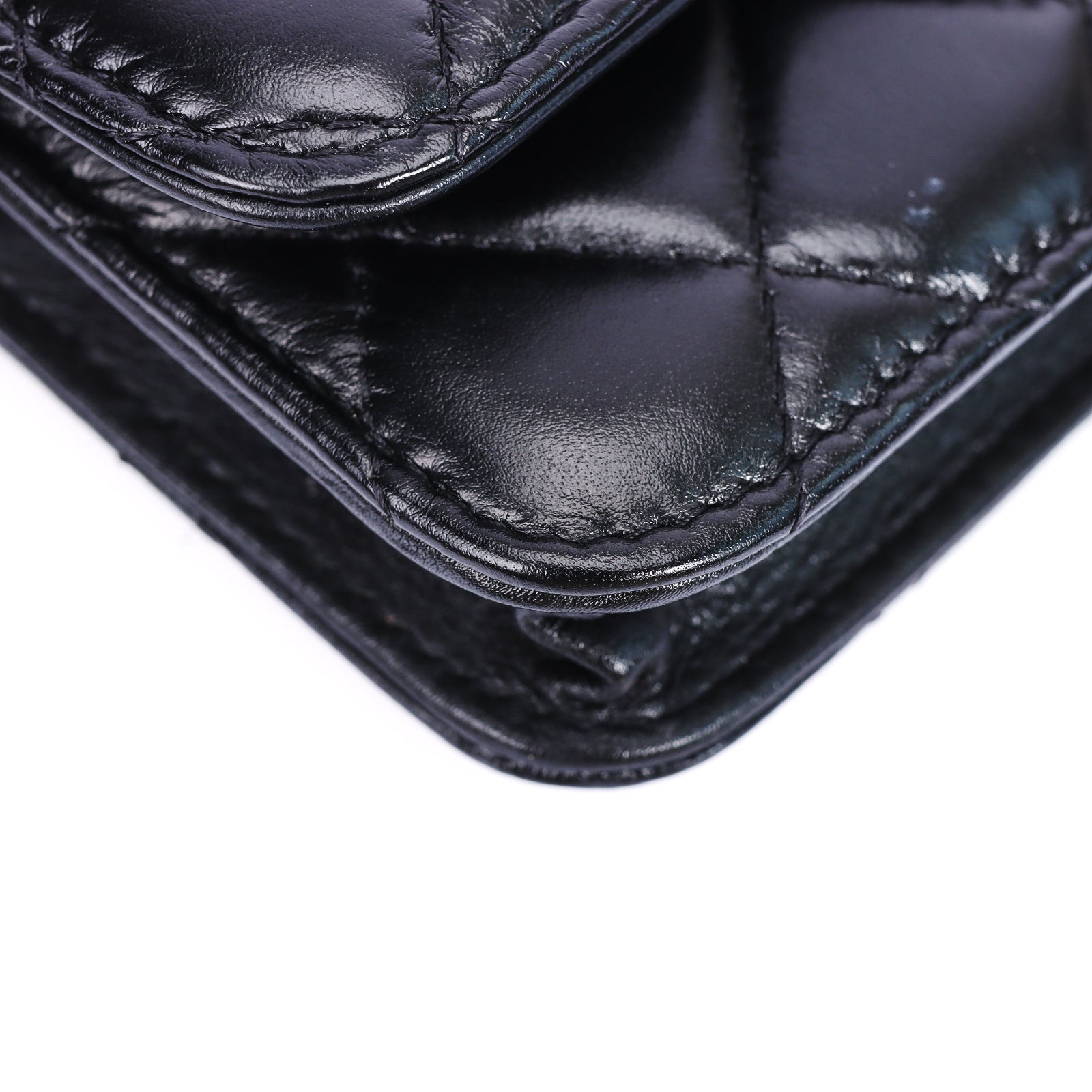 Pre-Owned Chanel Classic Quilted Pearl Handle Black Lambskin Leather Wallet on Chain 85862214