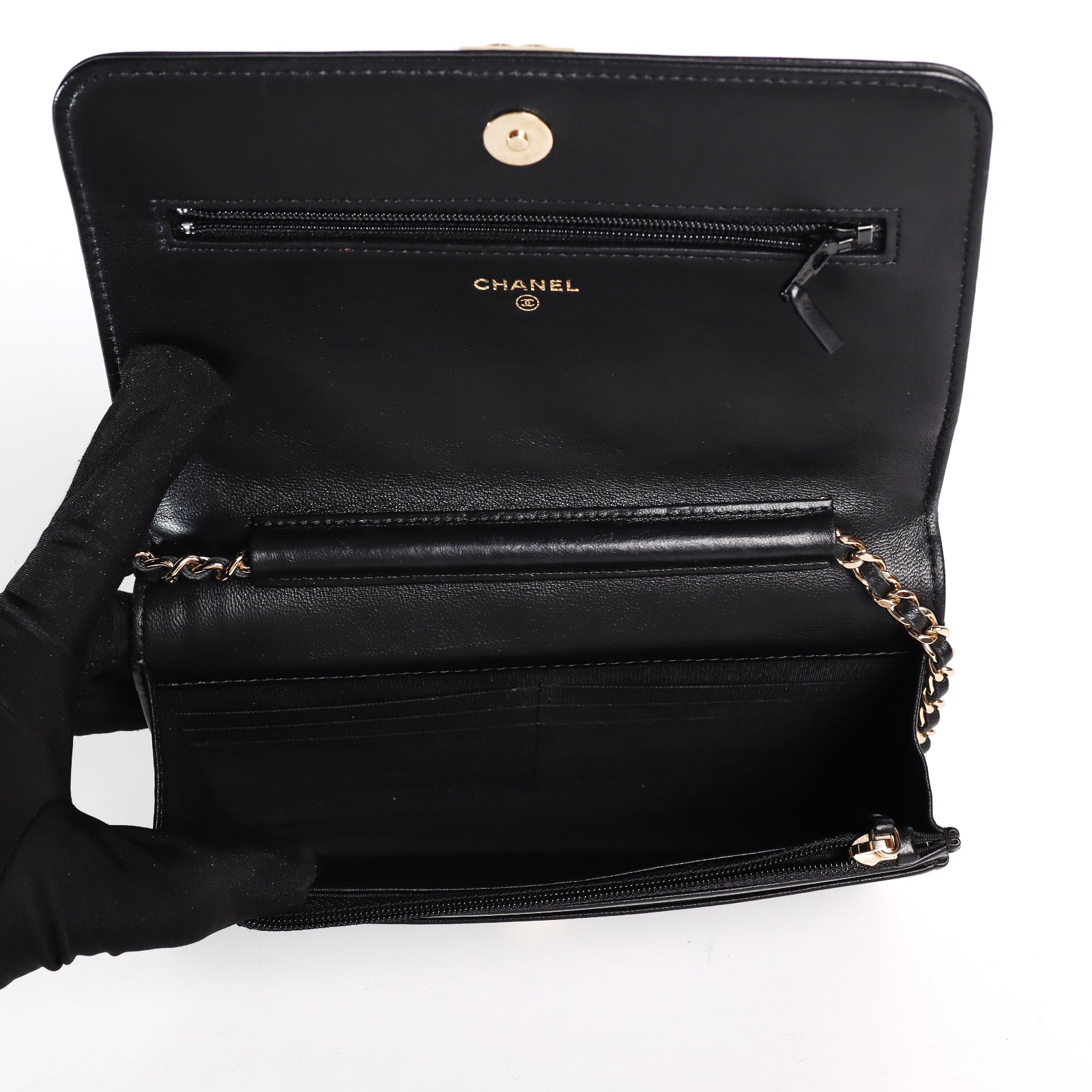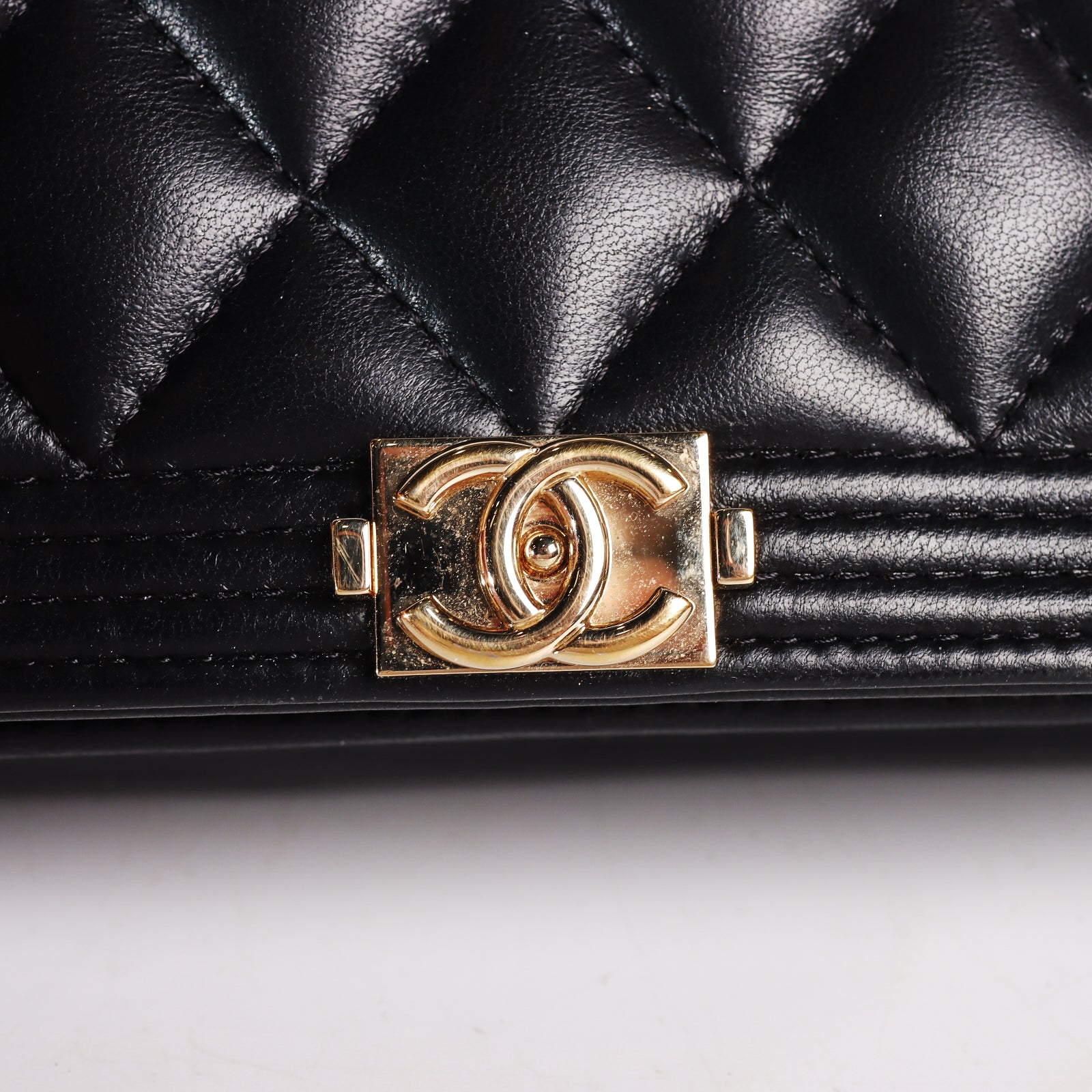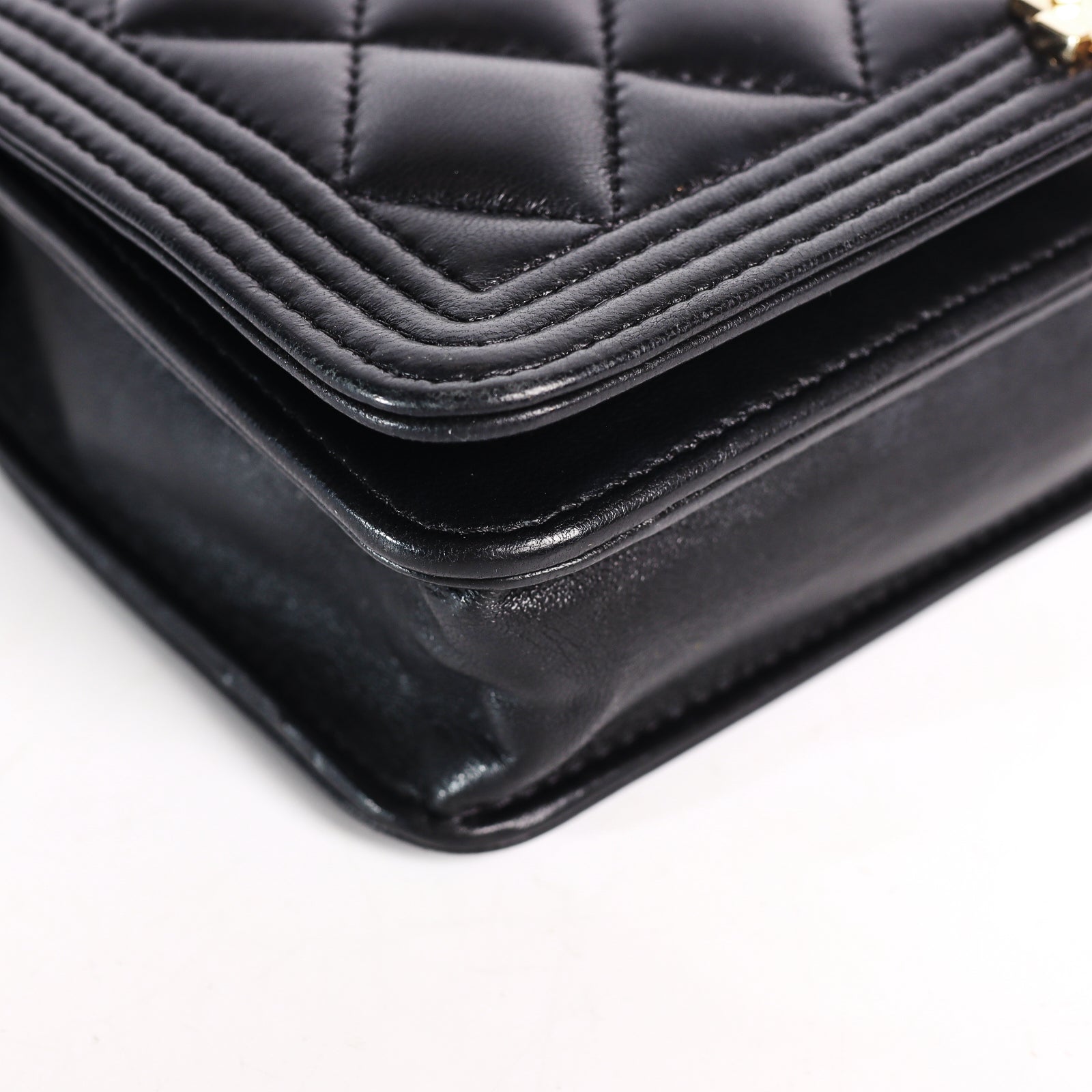 Pre-Owned Chanel Boy Black Lambskin Wallet on Chain 94594327