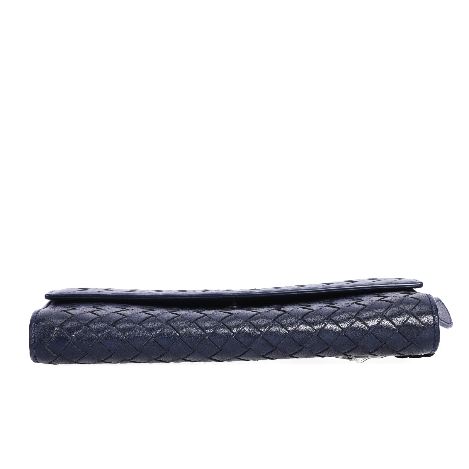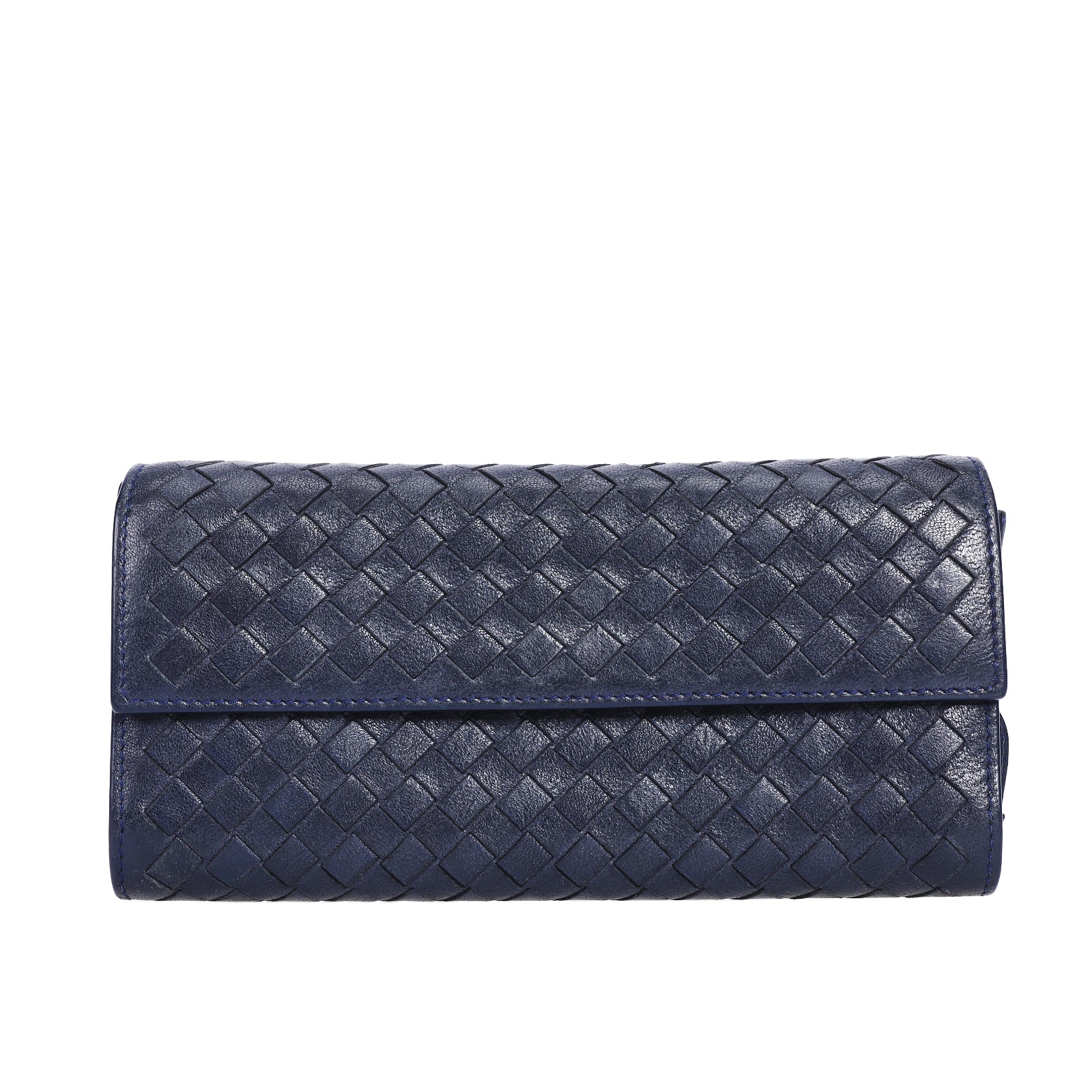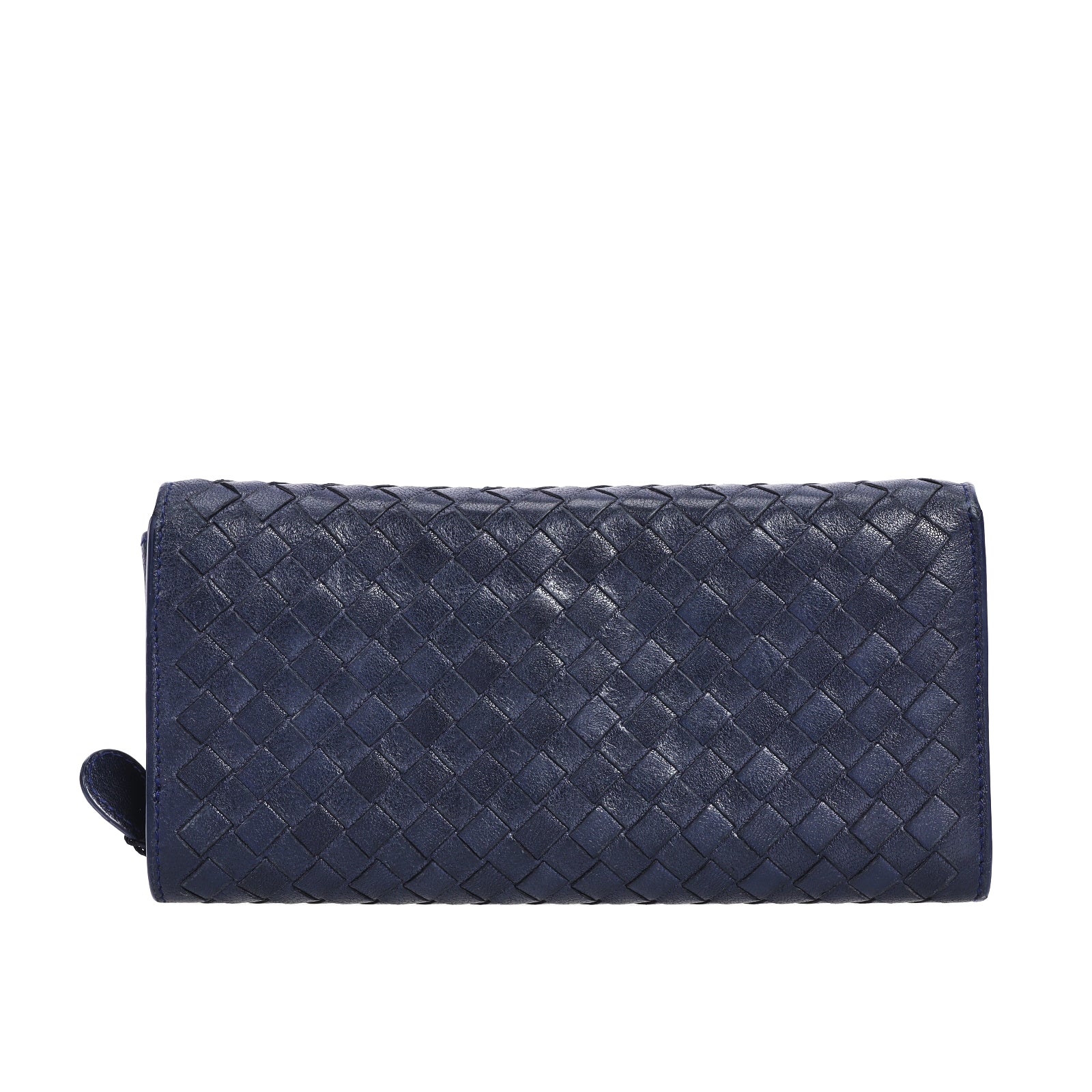 Pre-Owned Bottega Veneta Intrecciato Dark Blue Calfskin Long Wallet 27271253