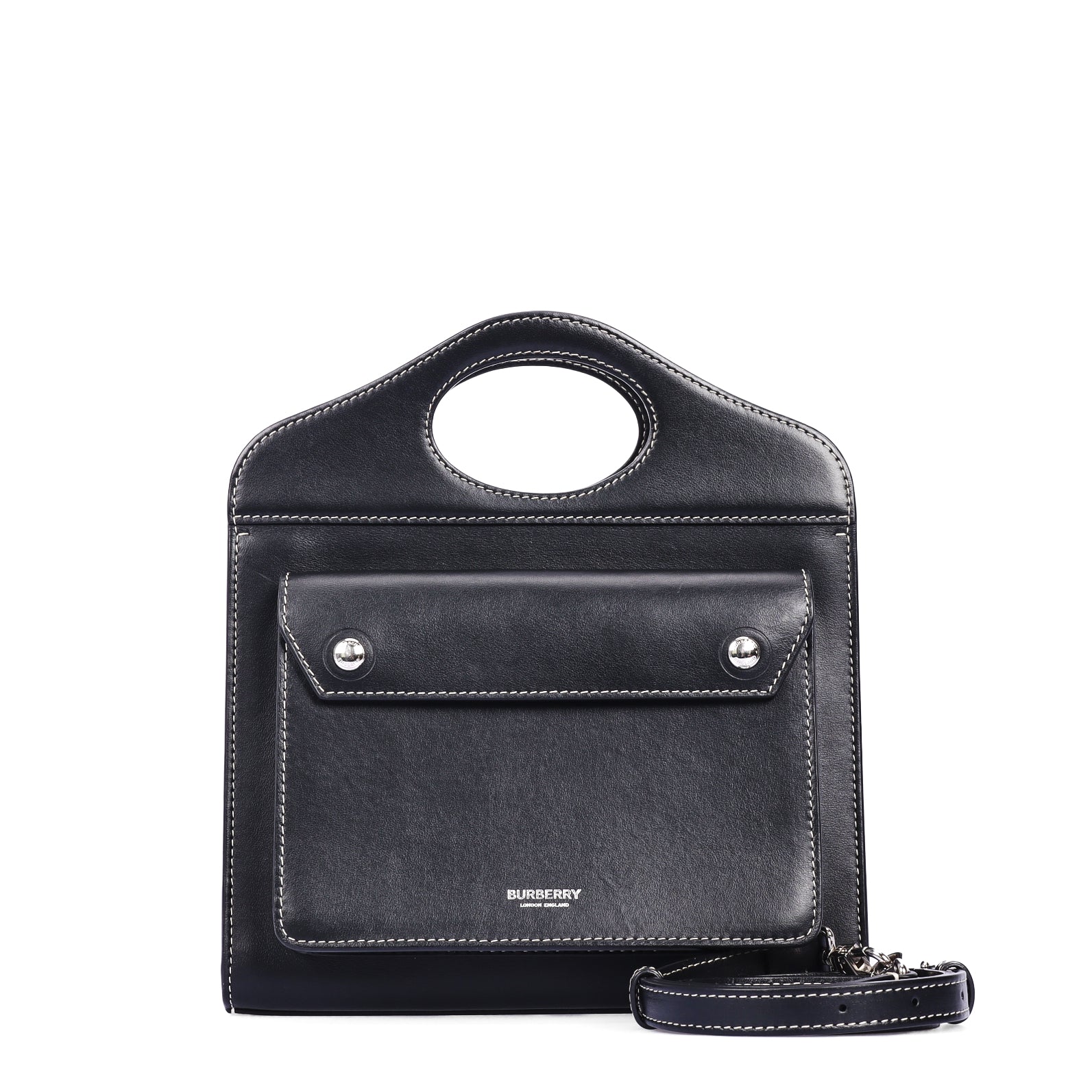 Pre-Owned Burberry Pocket Black Calfskin Top Handle Bag 47308687