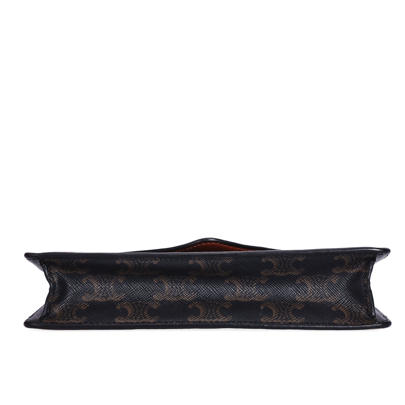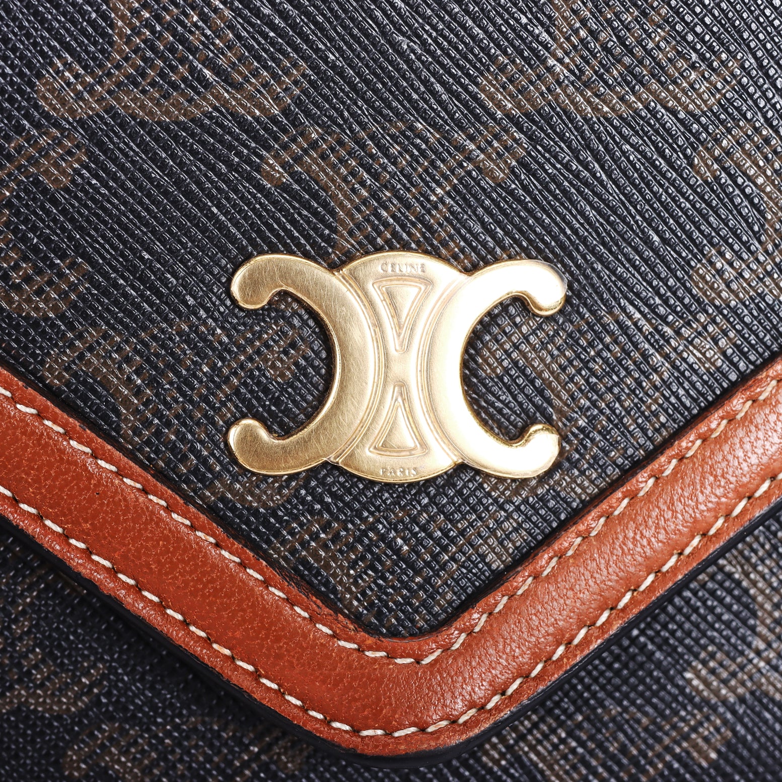 Pre-Owned Celine Triomphe Canvas Brown Calfskin Crossbody Bag 85545843