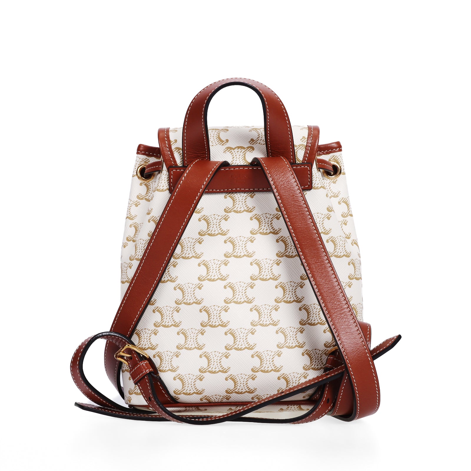 Pre-Owned Celine Triomphe Mini Size White Coated Canvas Backpack 85333323 L