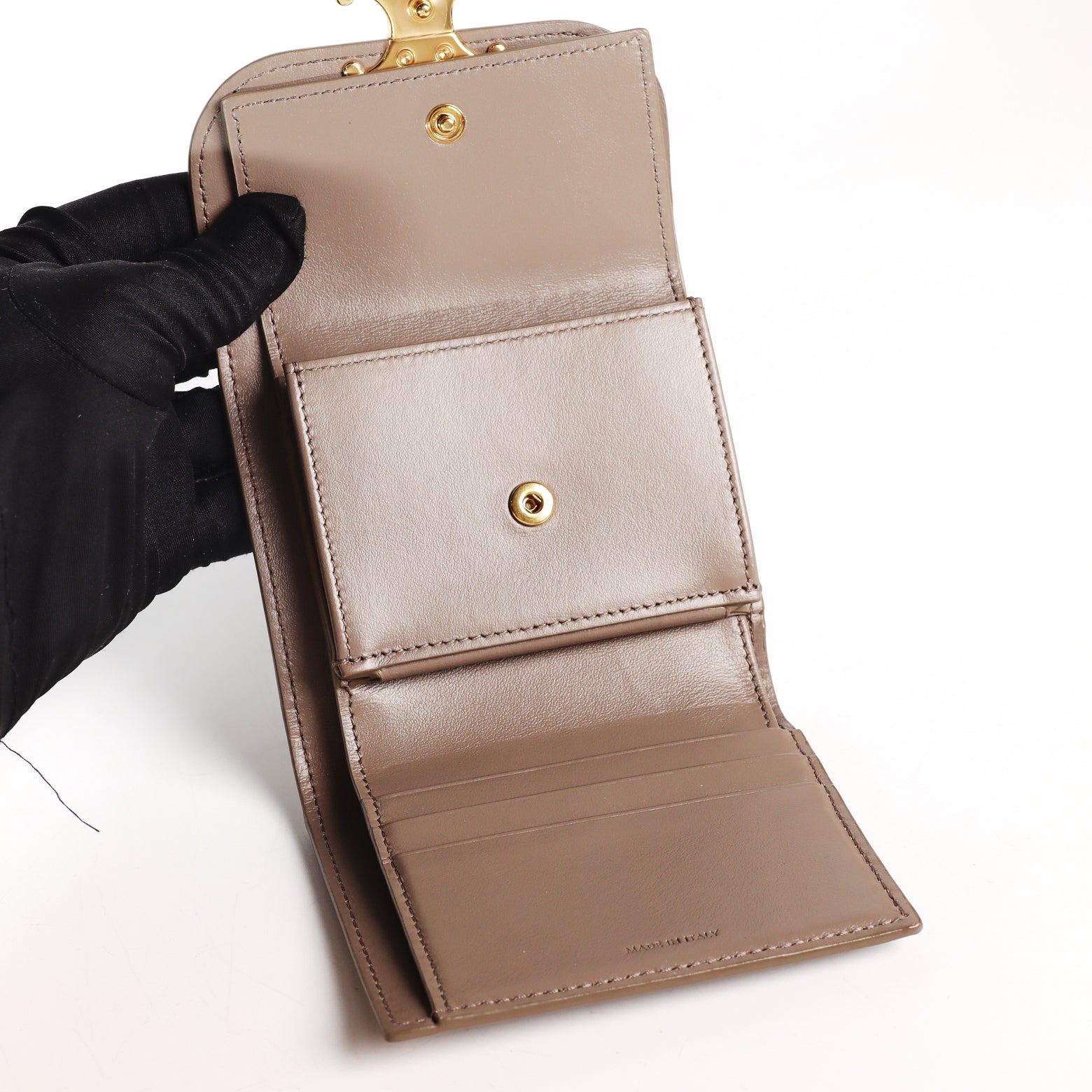 Pre-Owned Celine Triomphe Taupe Calfskin Small Wallet 45551722