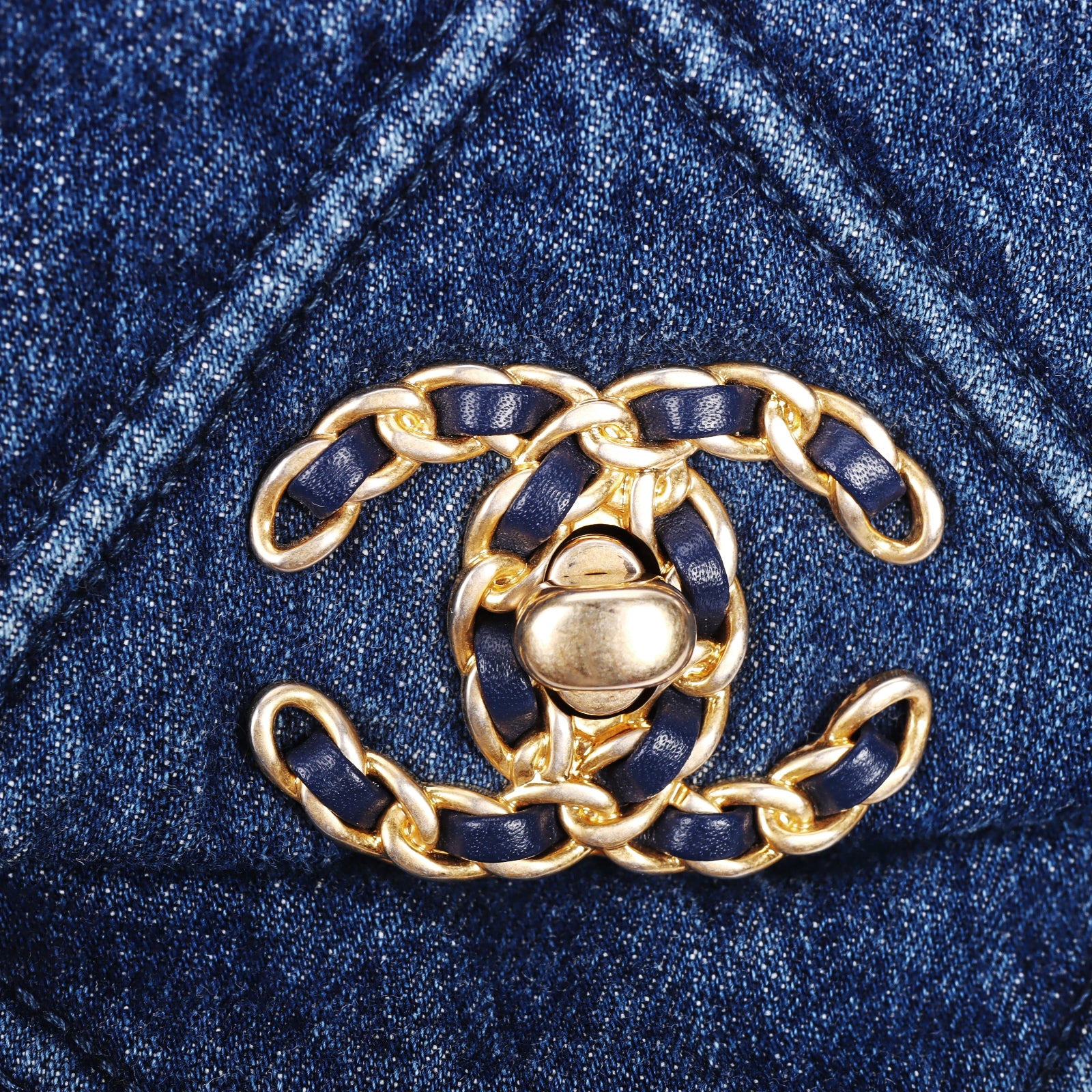 Pre-Owned Chanel 19 Large Size Blue Quilted Denim Shoulder Bag 59062679 L