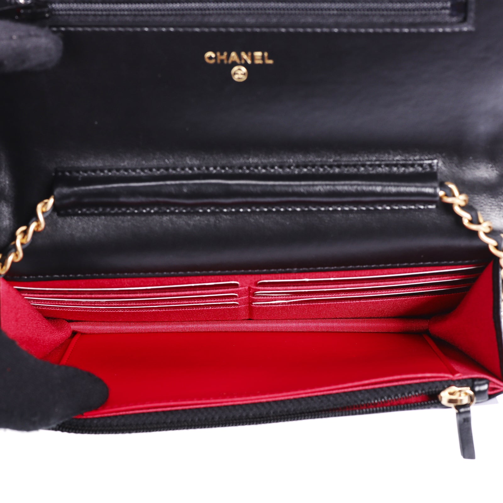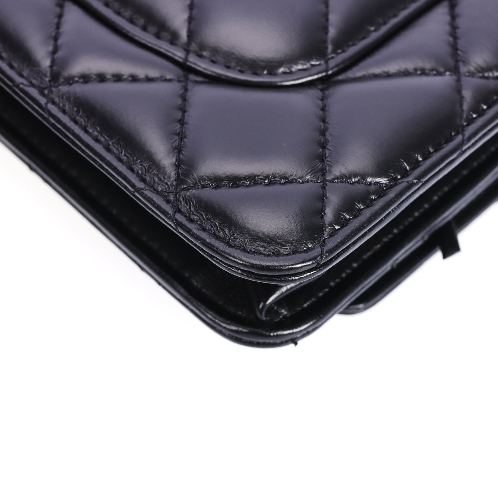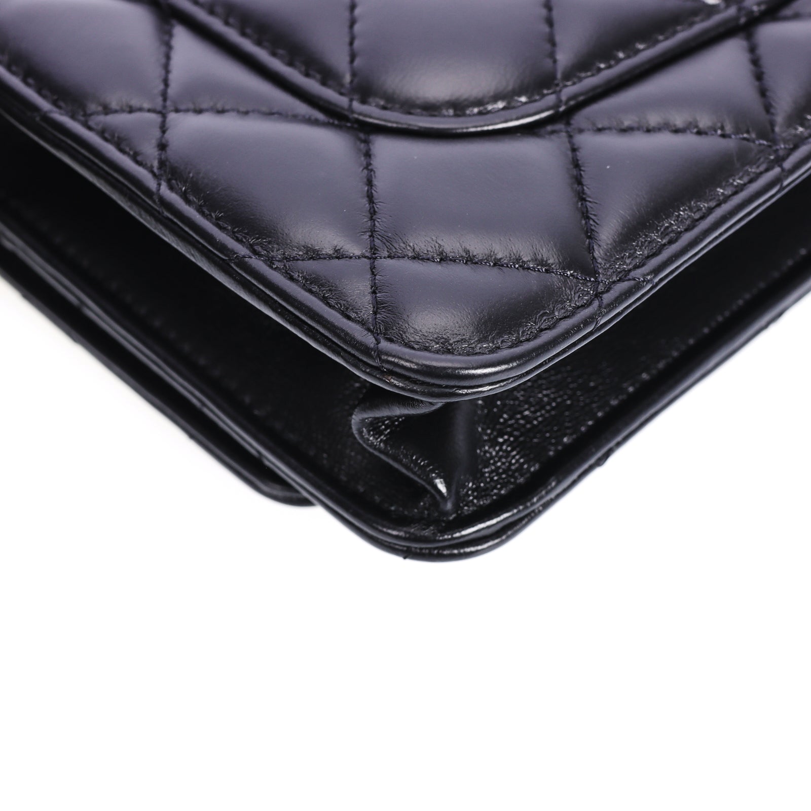 Pre-Owned Chanel Black Lambskin Classic Wallet On Chain 26421238 L