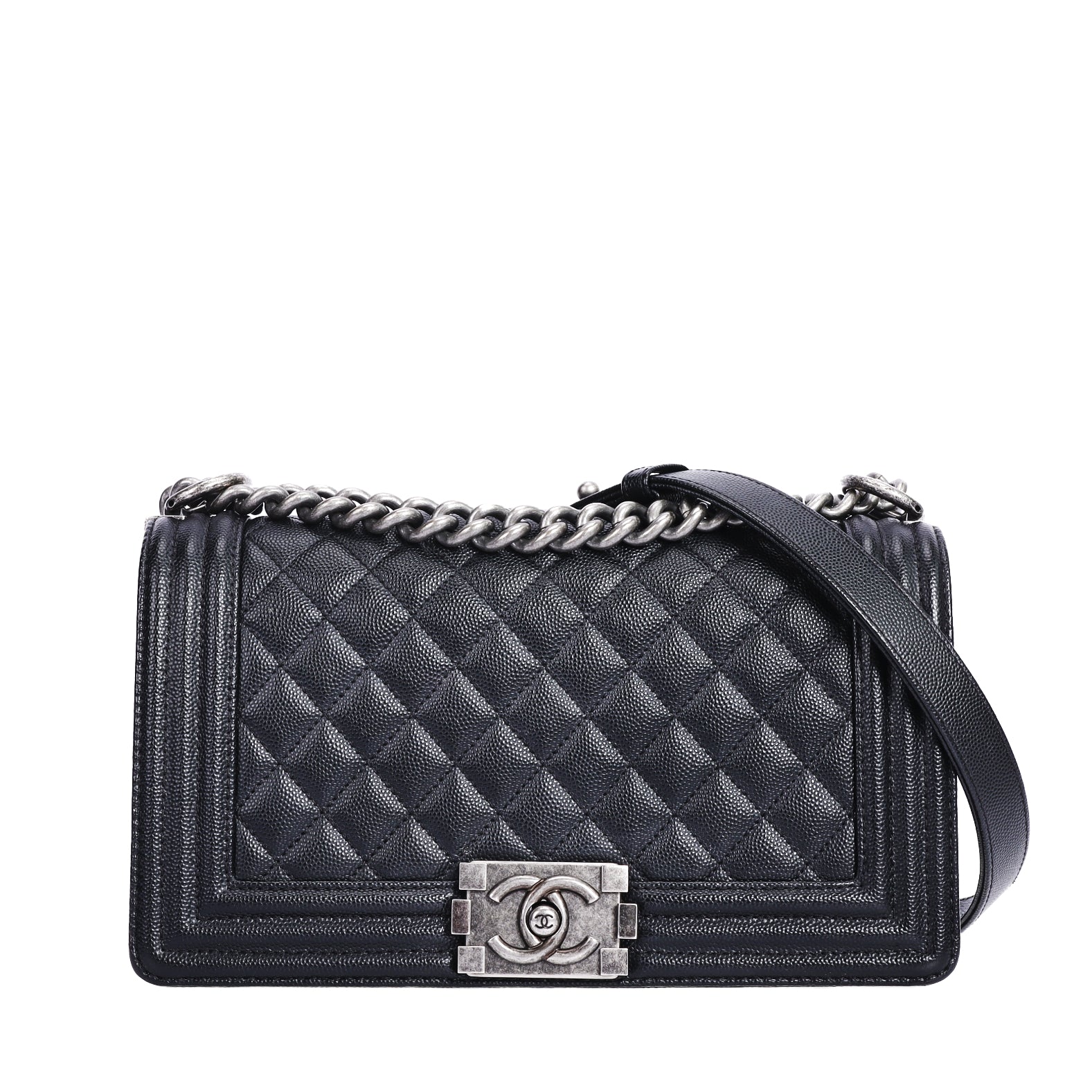 Pre-Owned Chanel Boy Medium Size Black Calfskin Leather Crossbody Bag 50888397 L