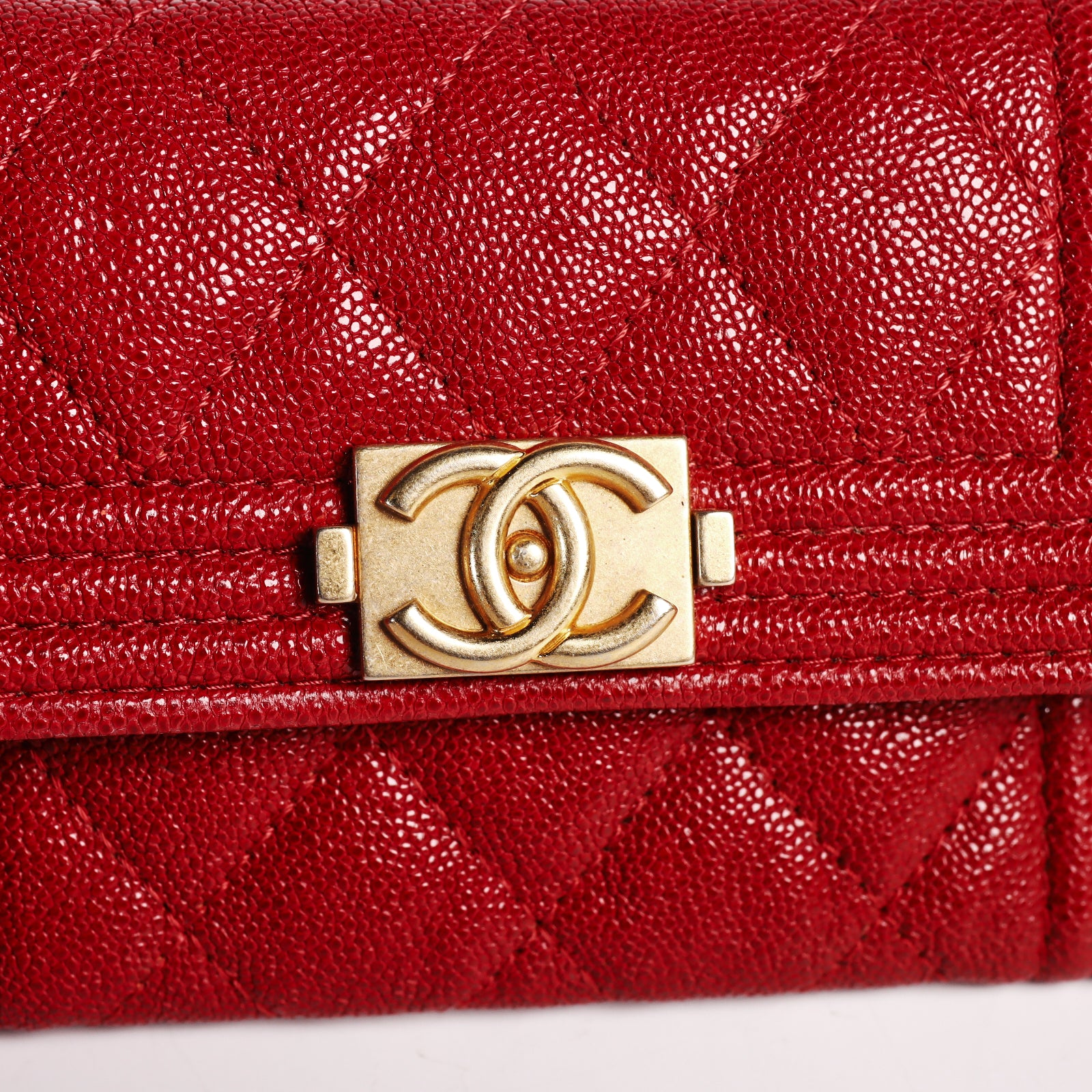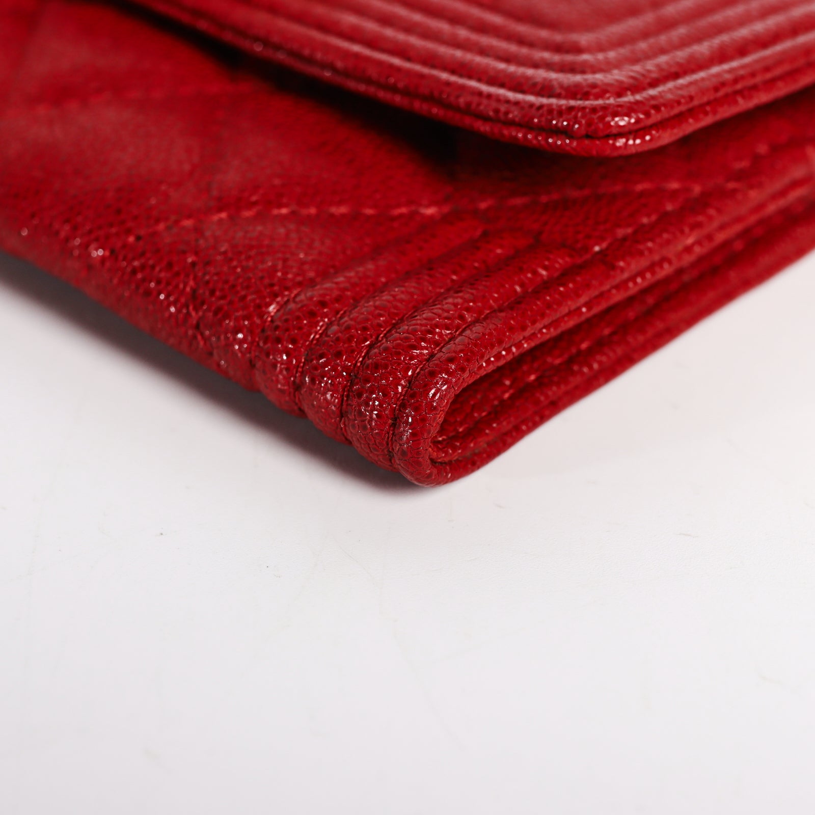Pre-Owned Chanel Boy Red Caviar Leather Small Wallet 18293001