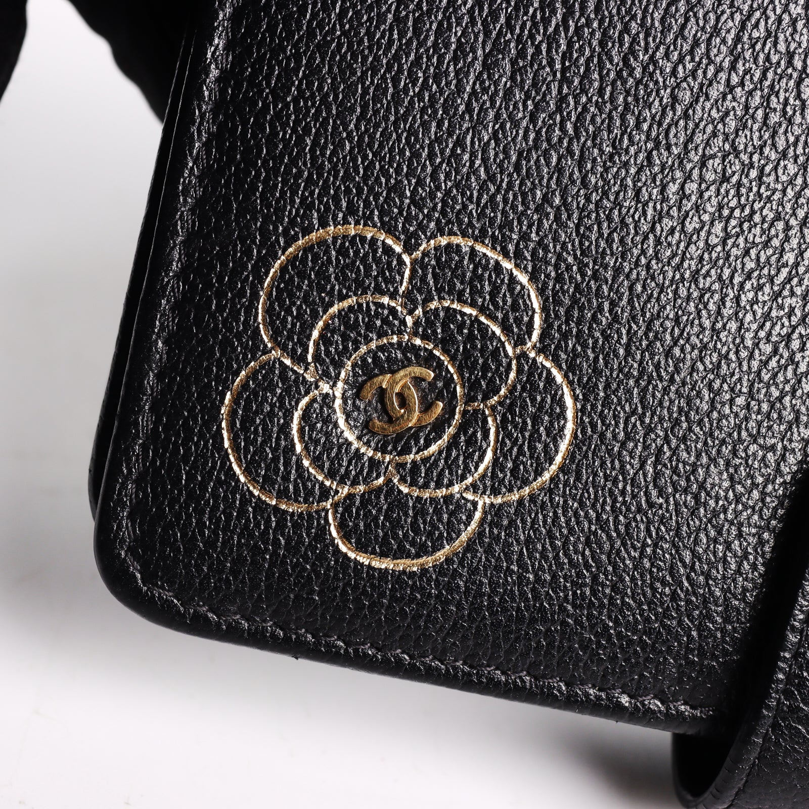 Pre-Owned Chanel Camellia Black Caviar Calfskin Wallet 55030173