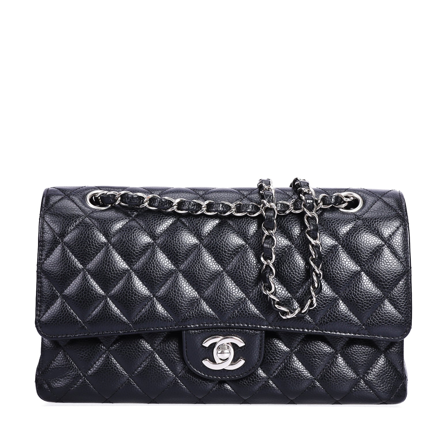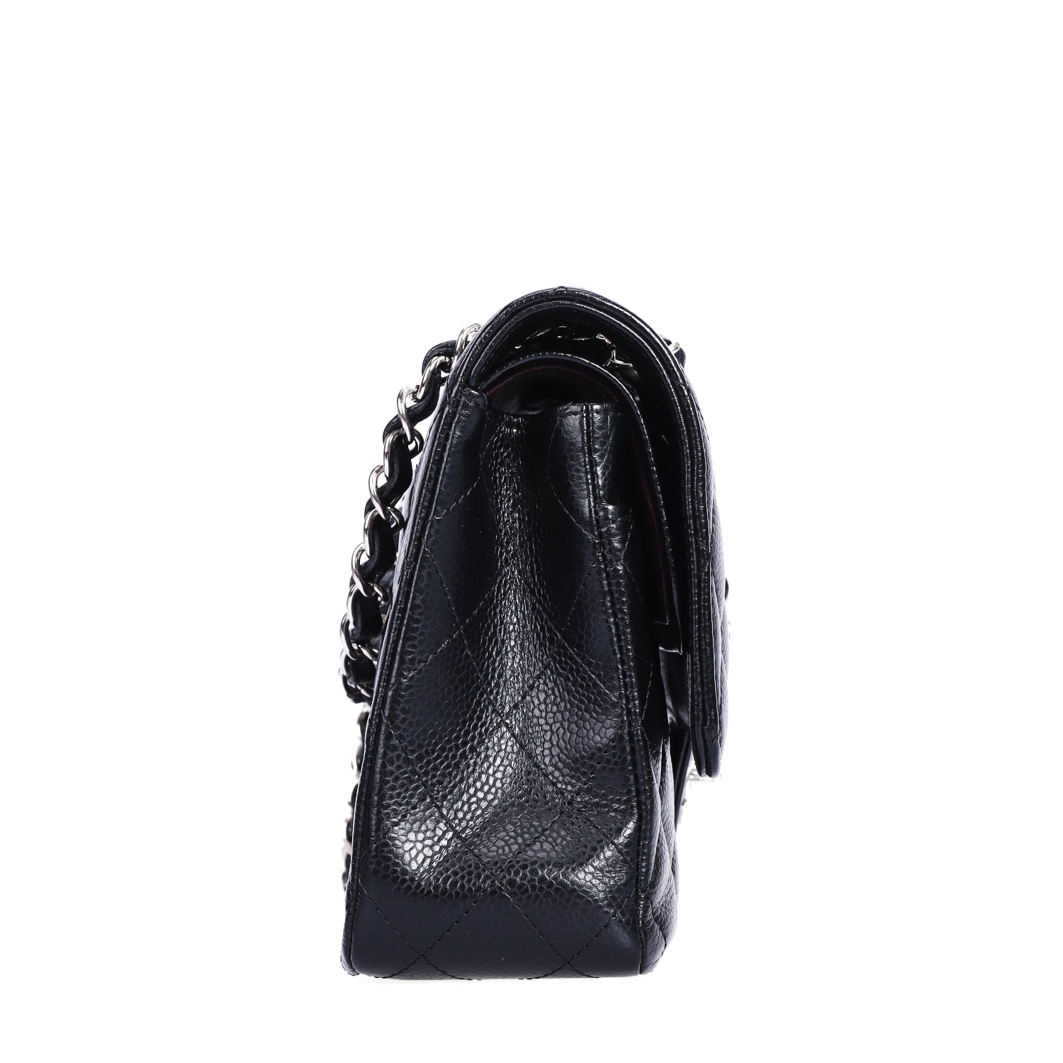 Pre-Owned Chanel Classic Double Flap Black Calfskin Leather Chain Shoulder Bag 79258893