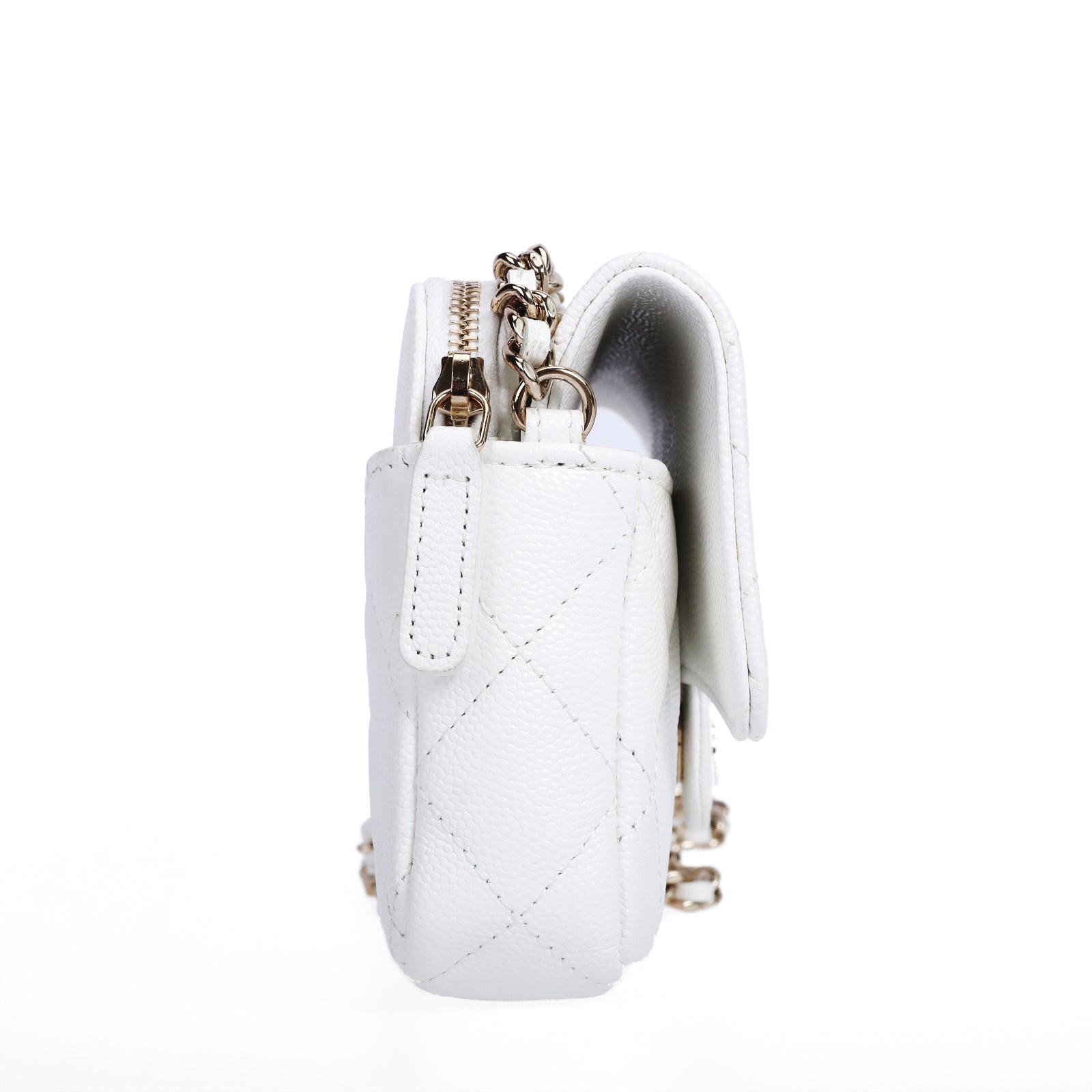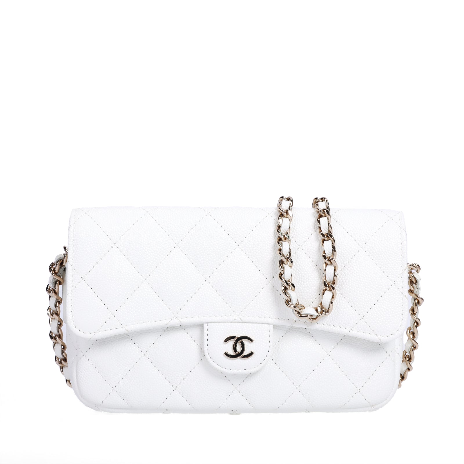 Pre-Owned Chanel Classic Flap White Calfskin Leather Chain Shoulder Bag 63949210