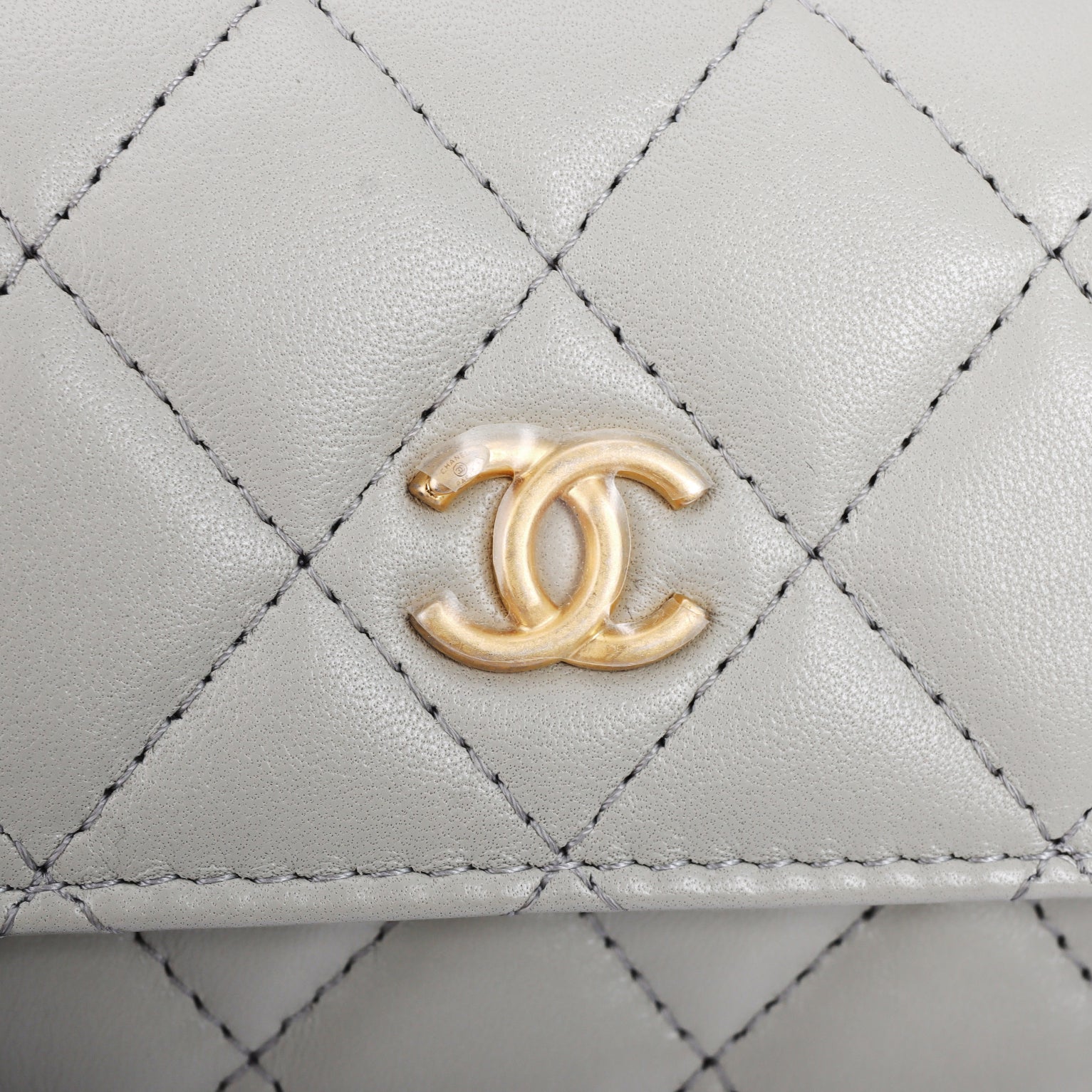 Pre-Owned Chanel Classic Quilted Grey Lambskin Leather Shoulder Bag 66562541