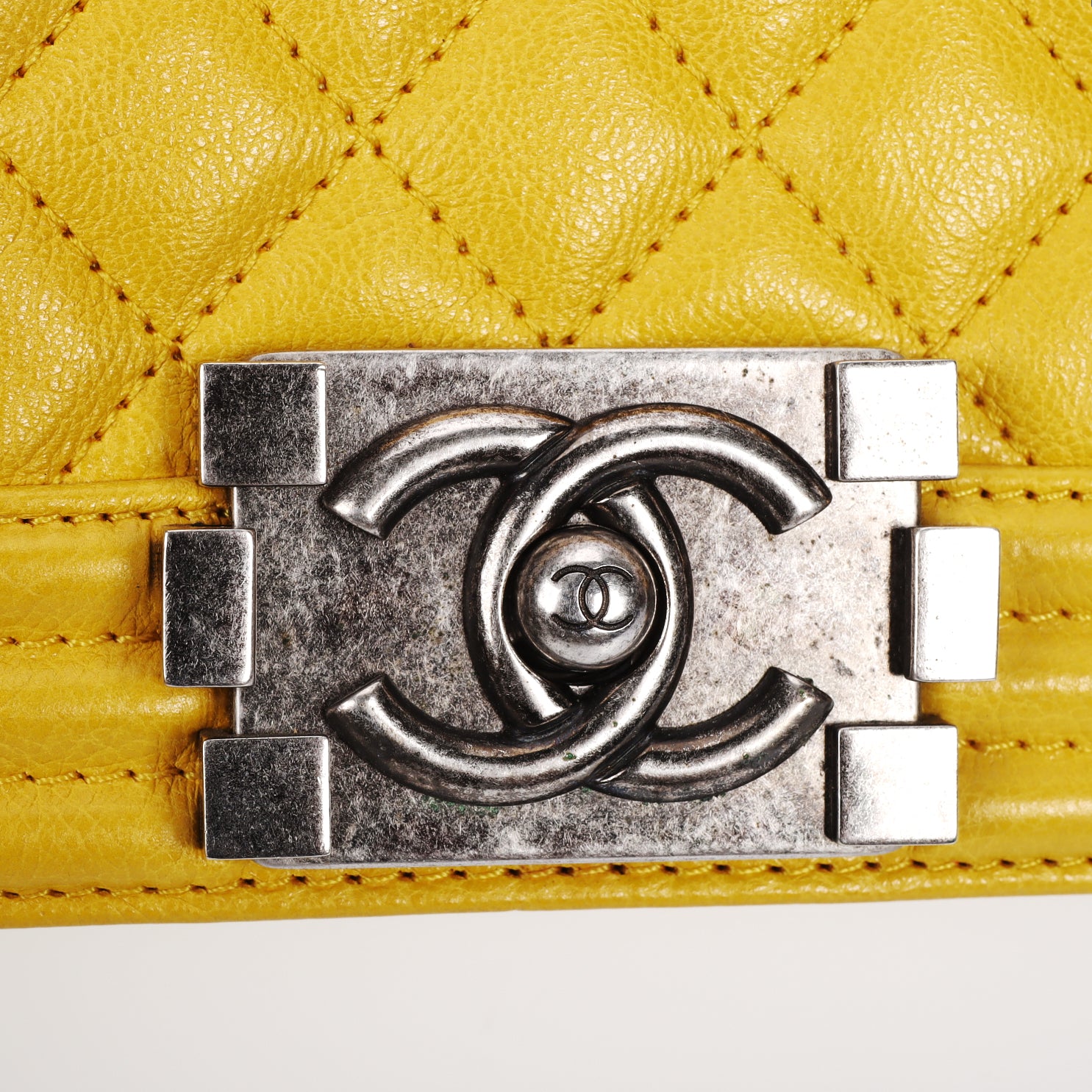 Pre-Owned Chanel Le Boy Small Size Yellow Calfskin Shoulder Bag 60849146 L