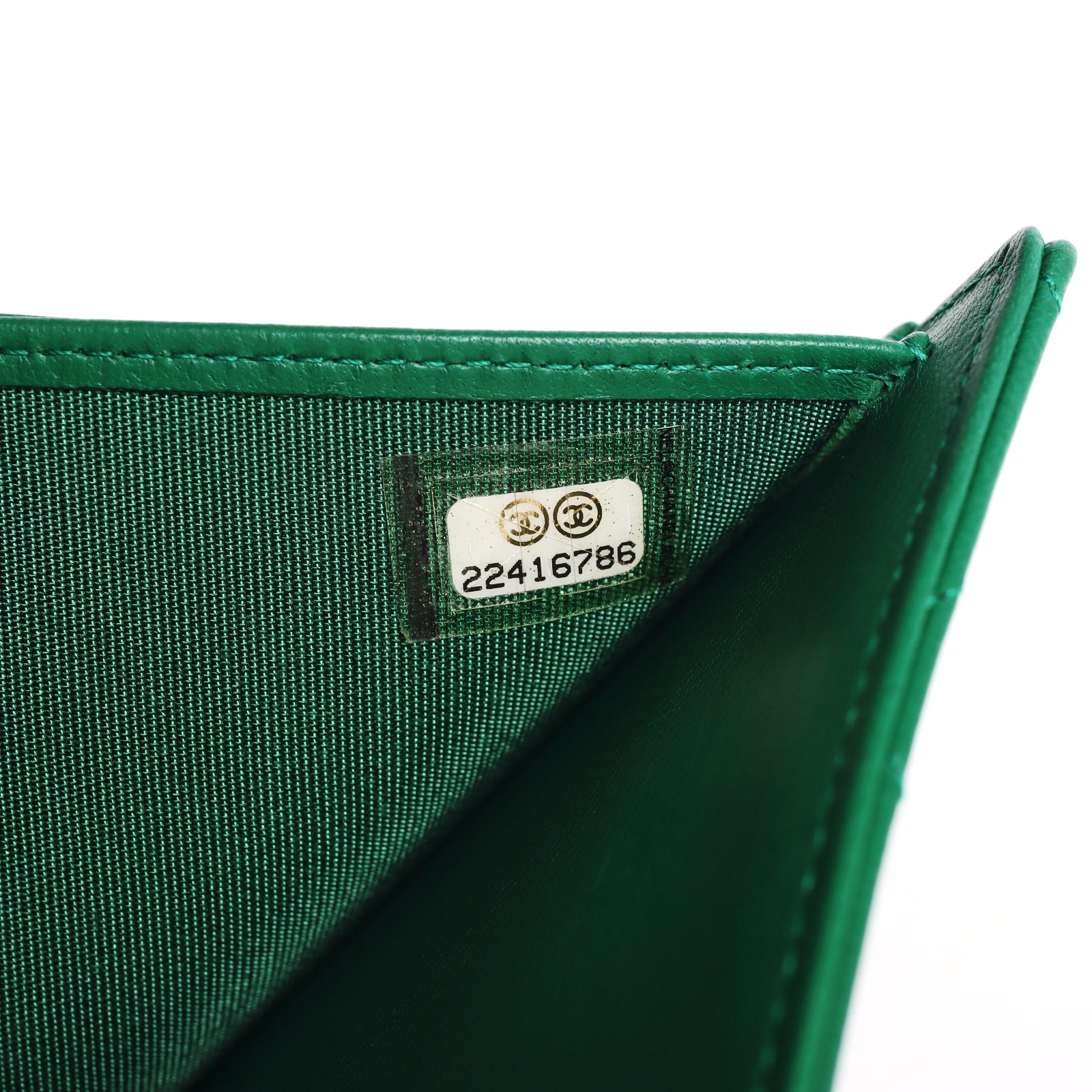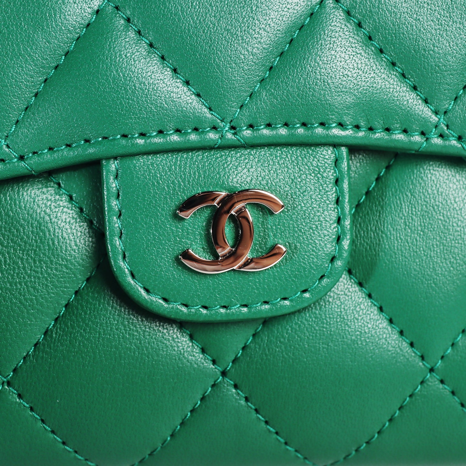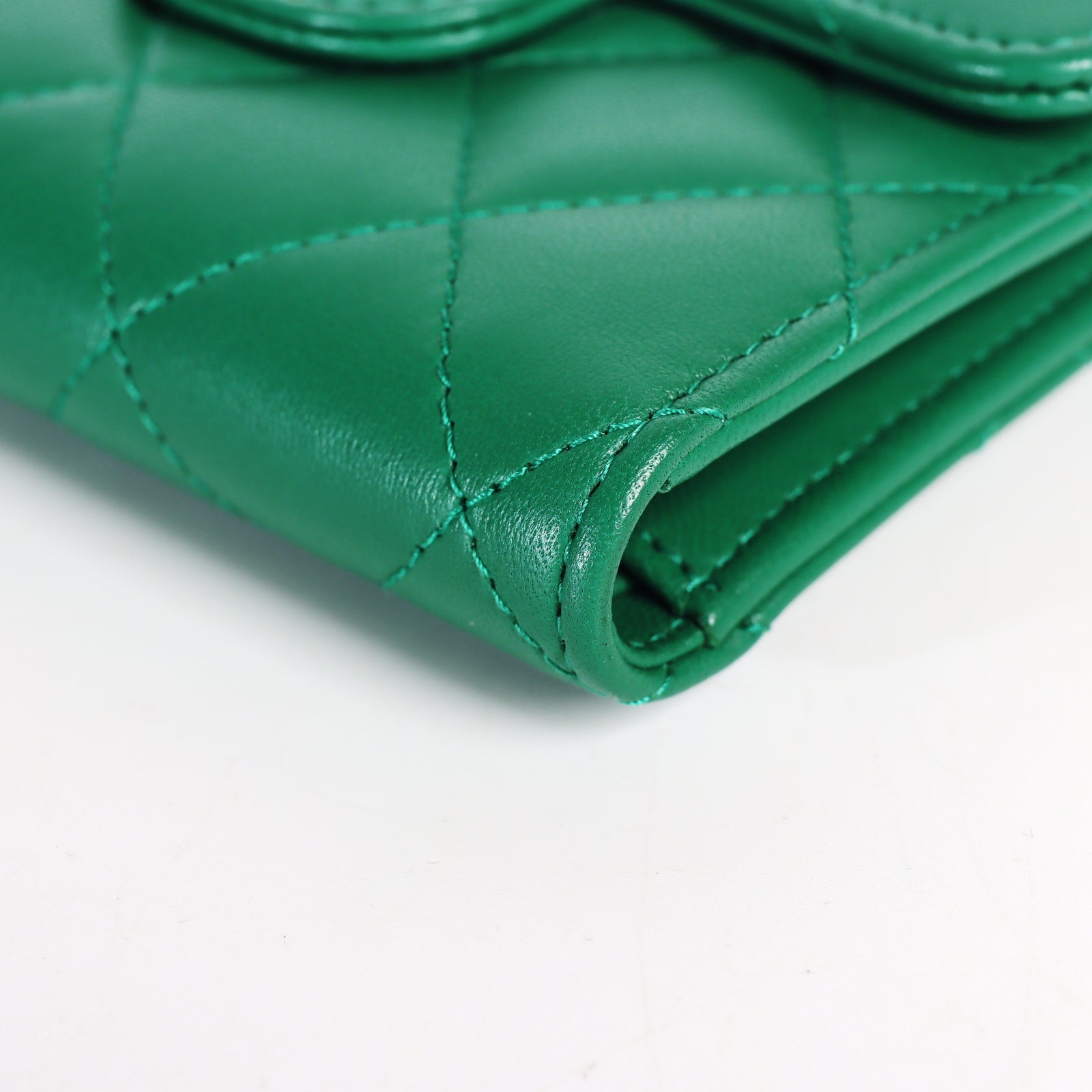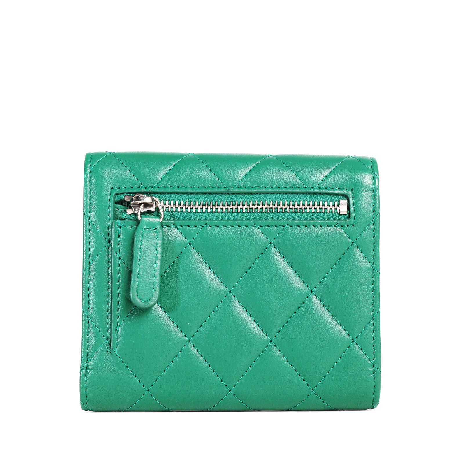 Pre-Owned Chanel Quilted Green Lambskin Compact Wallet 87389318