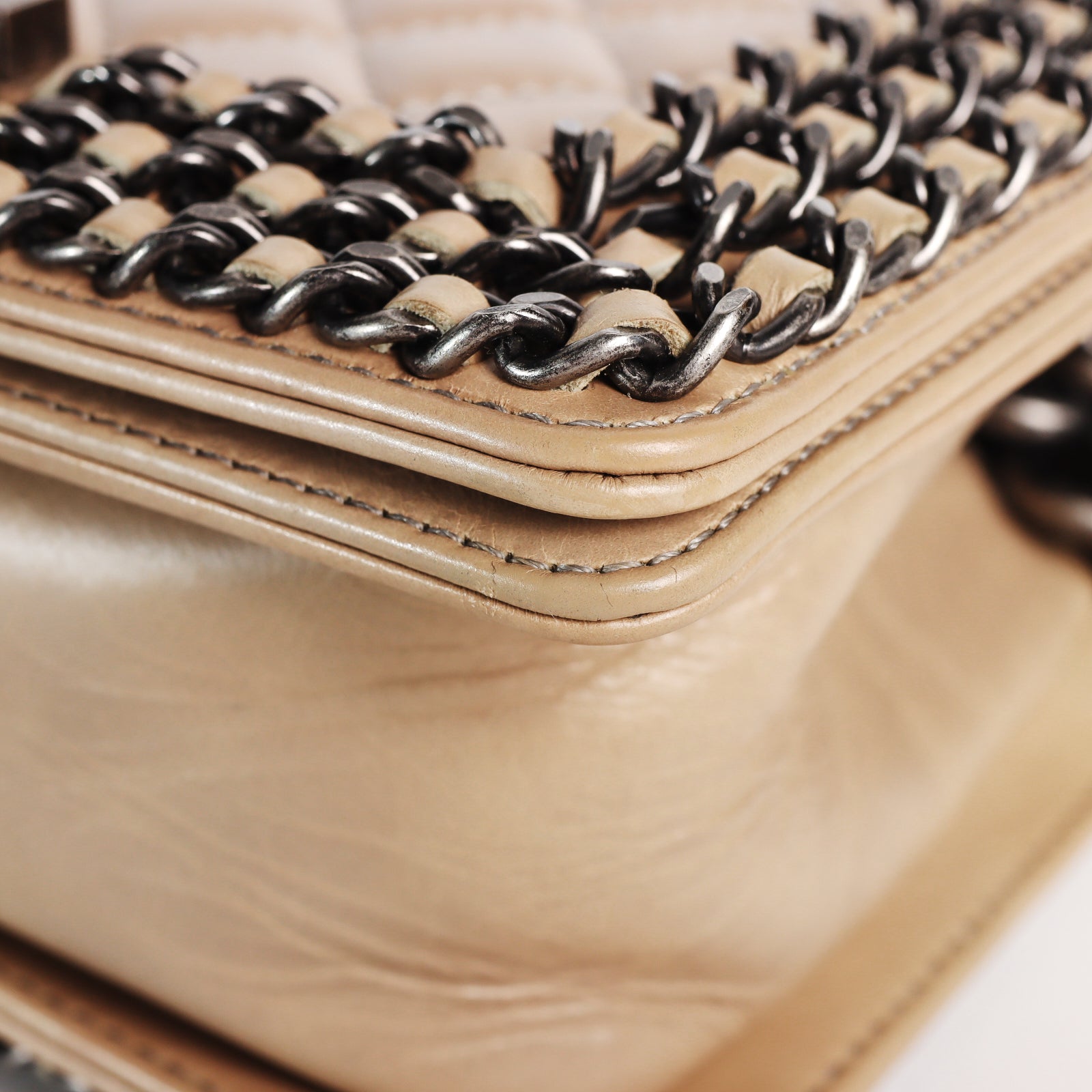 Pre-Owned Chanel Small Size Le Boy Beige Calfskin Shoulder Bag 51706967 L