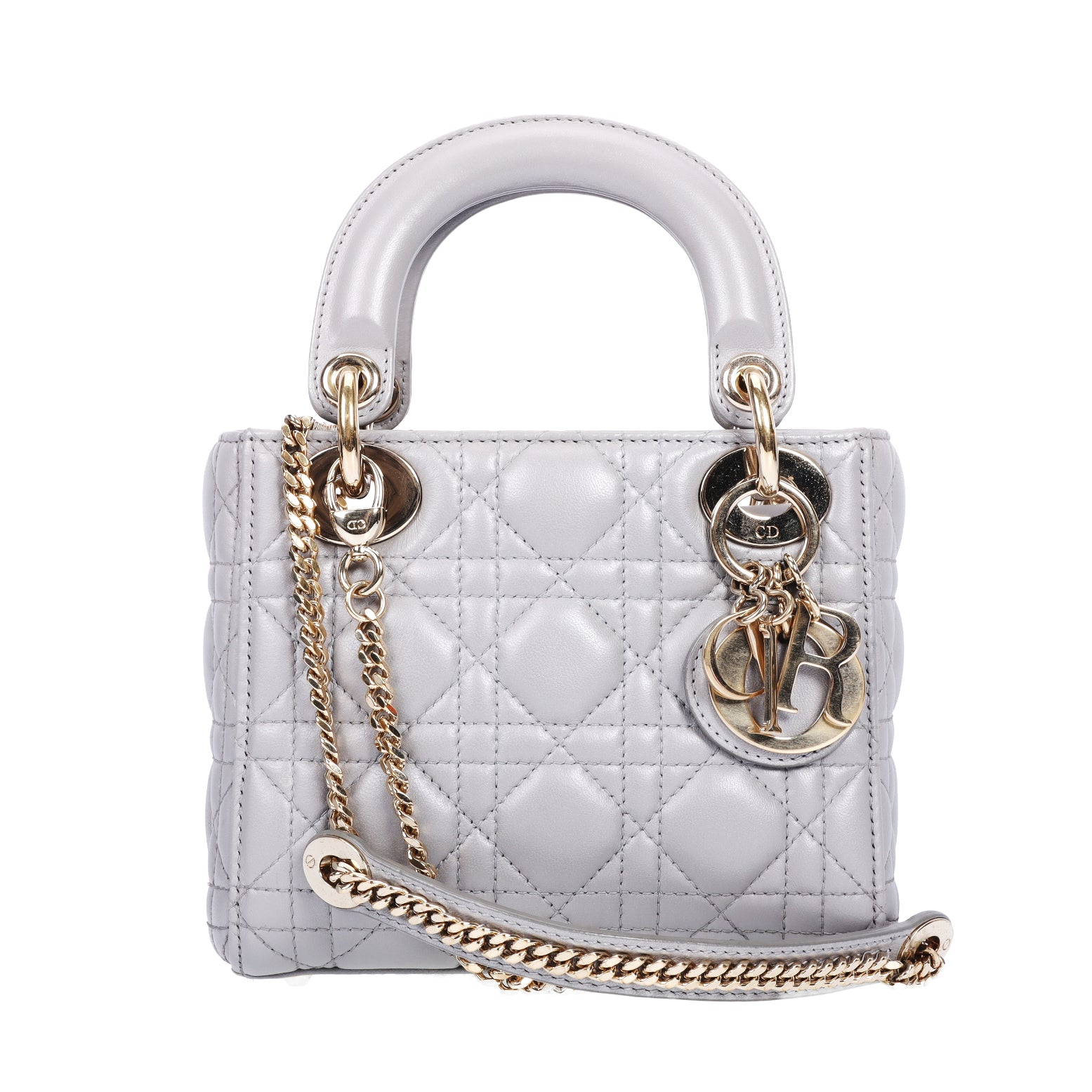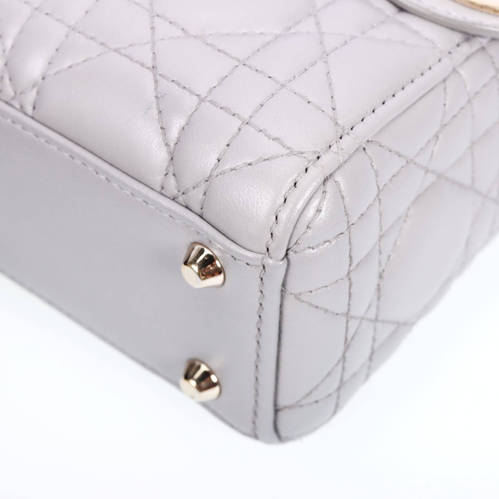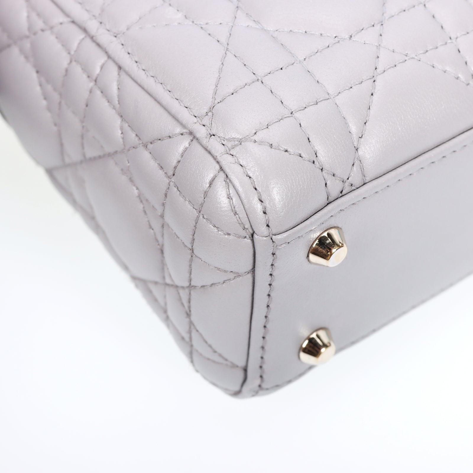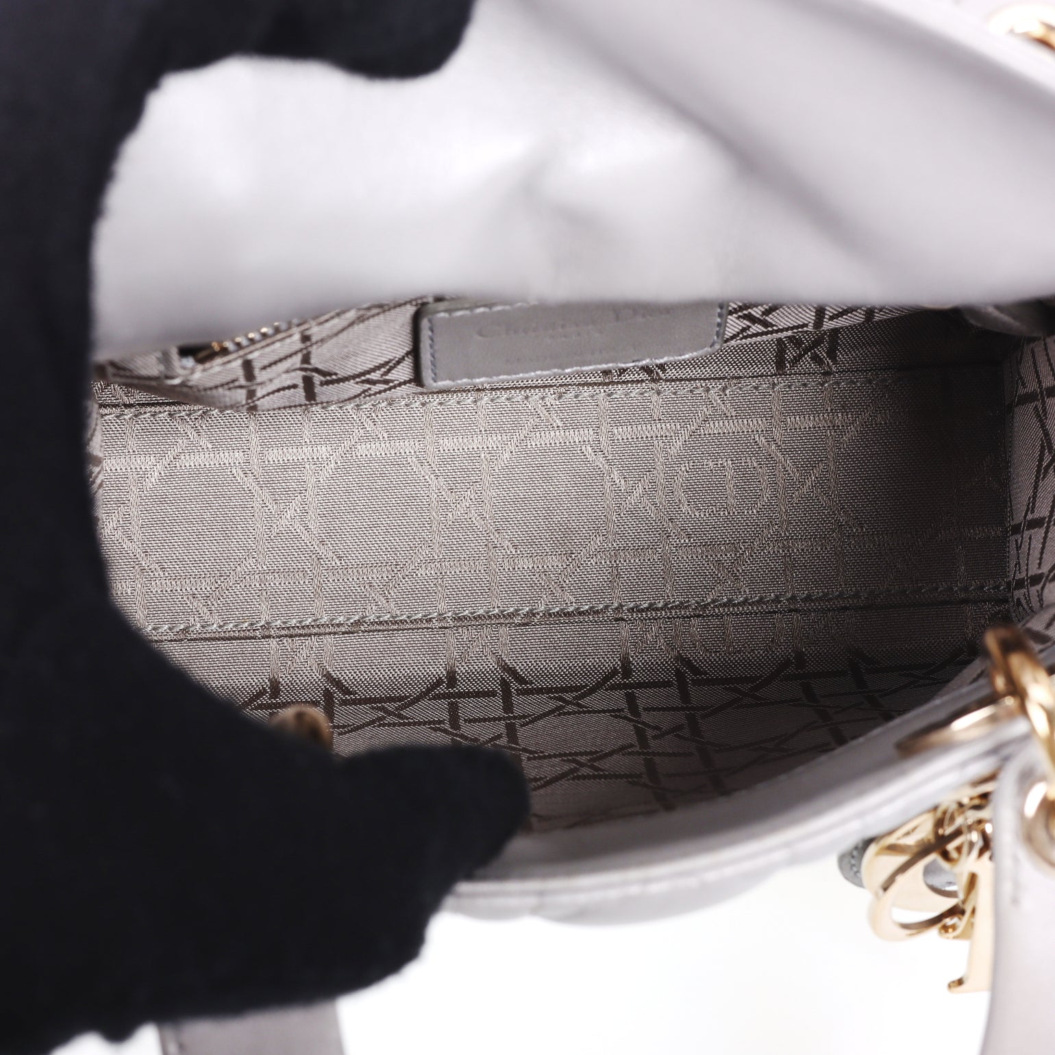 Pre-Owned Christian Dior Lady Dior Grey Calfskin Shoulder Bag 12758717 L