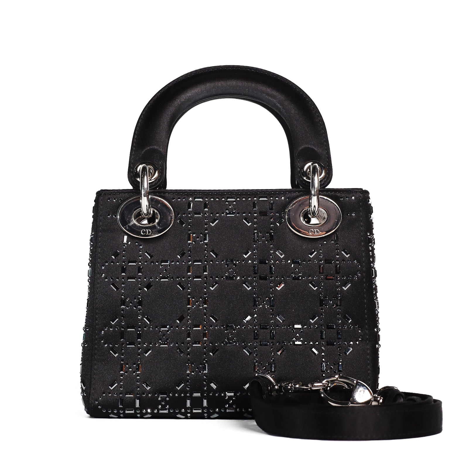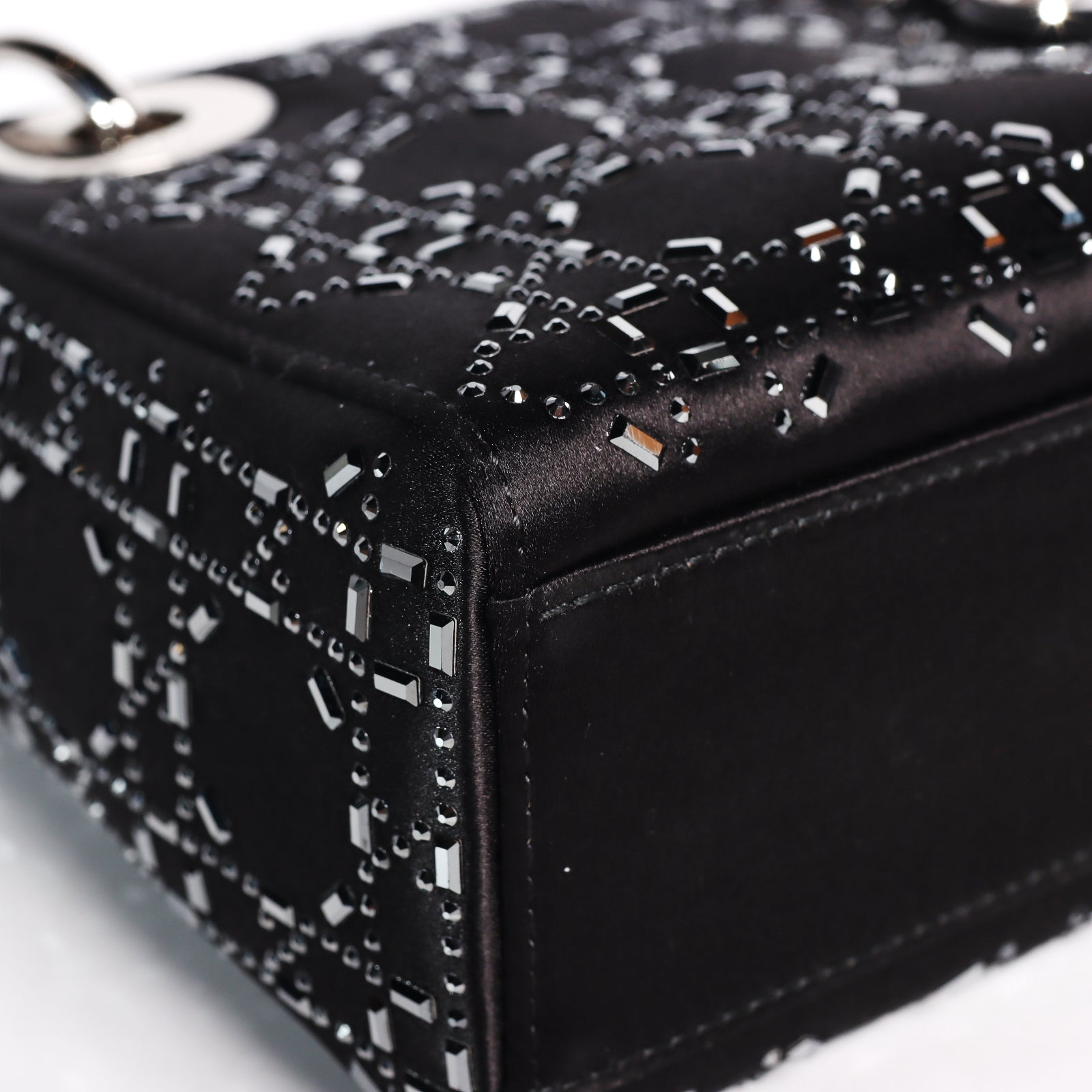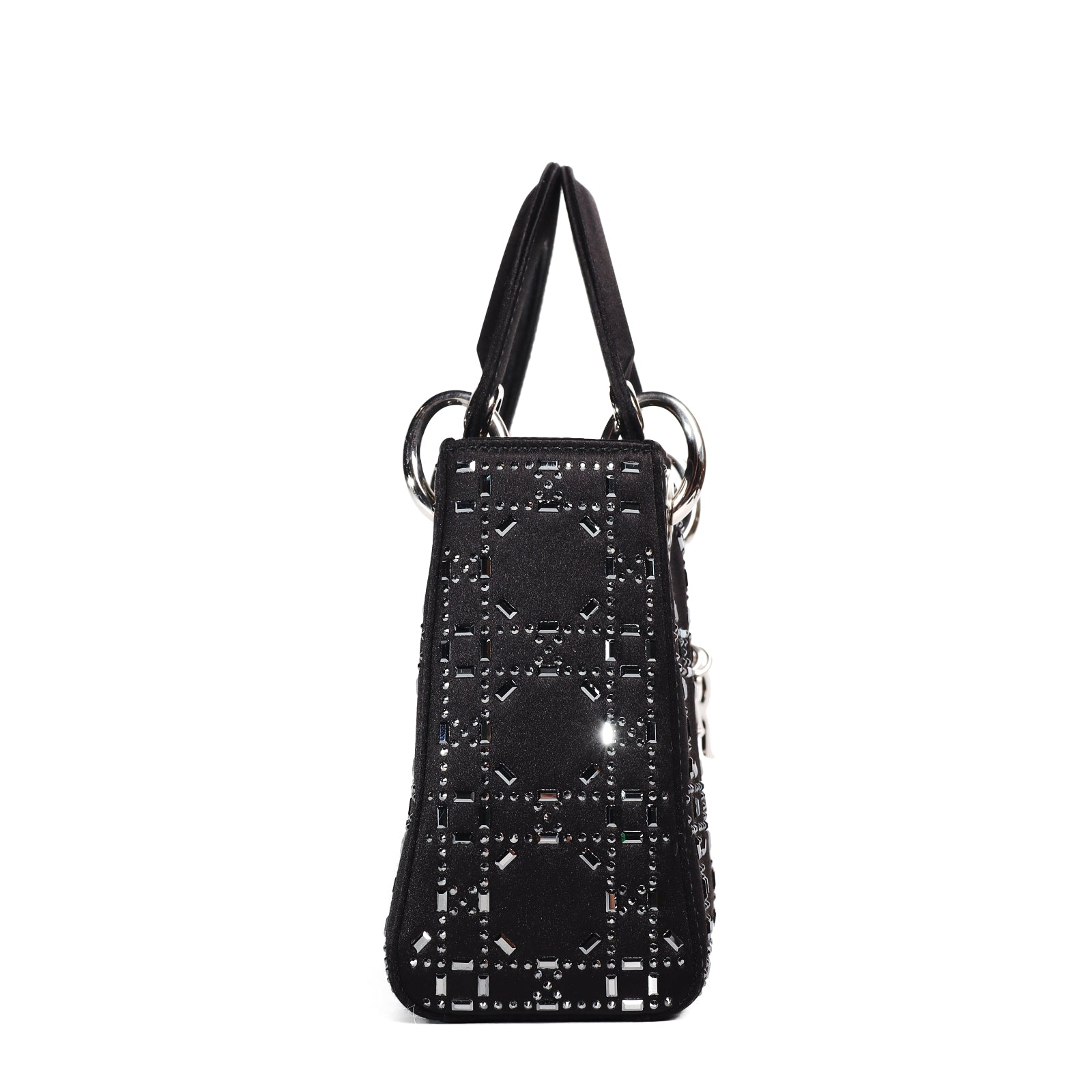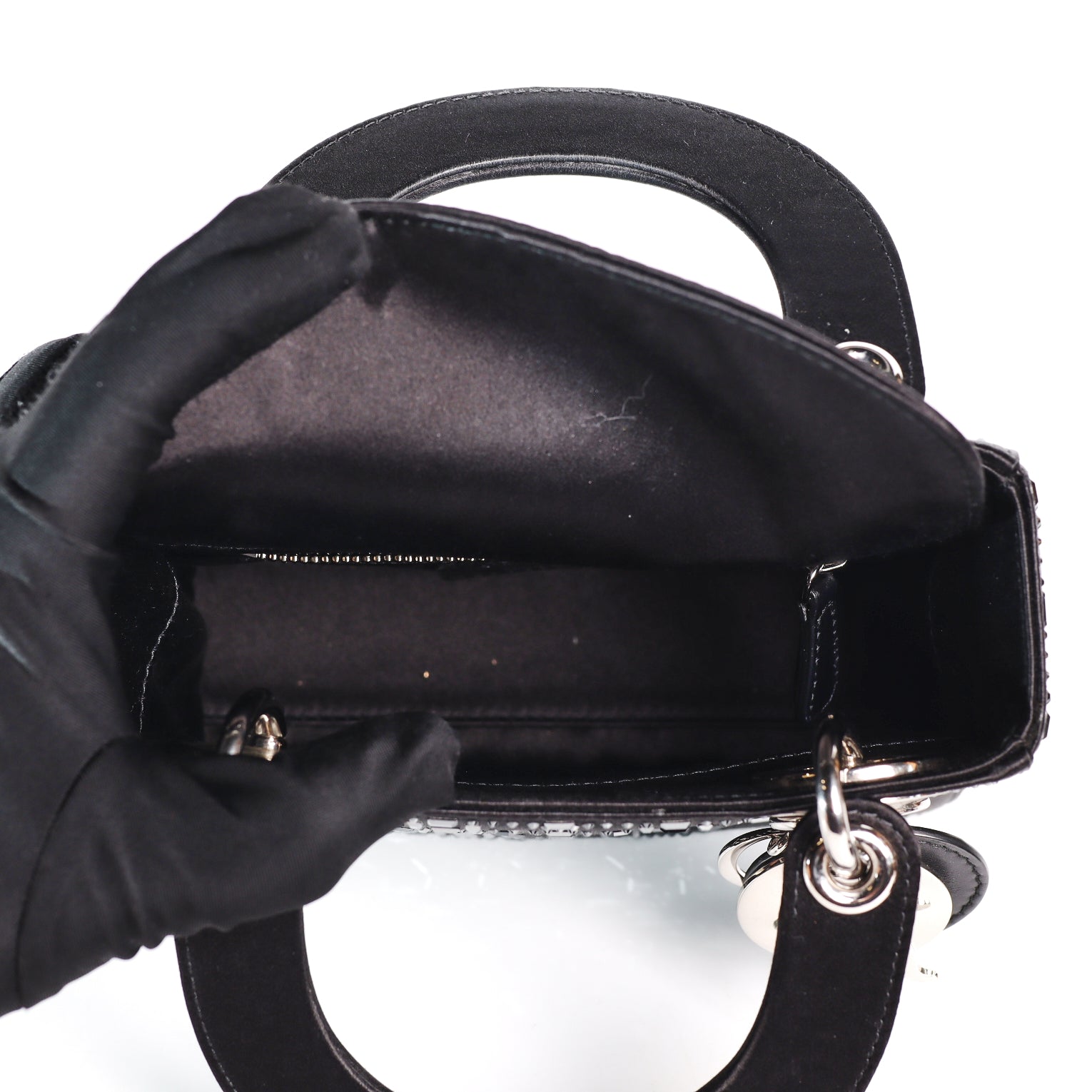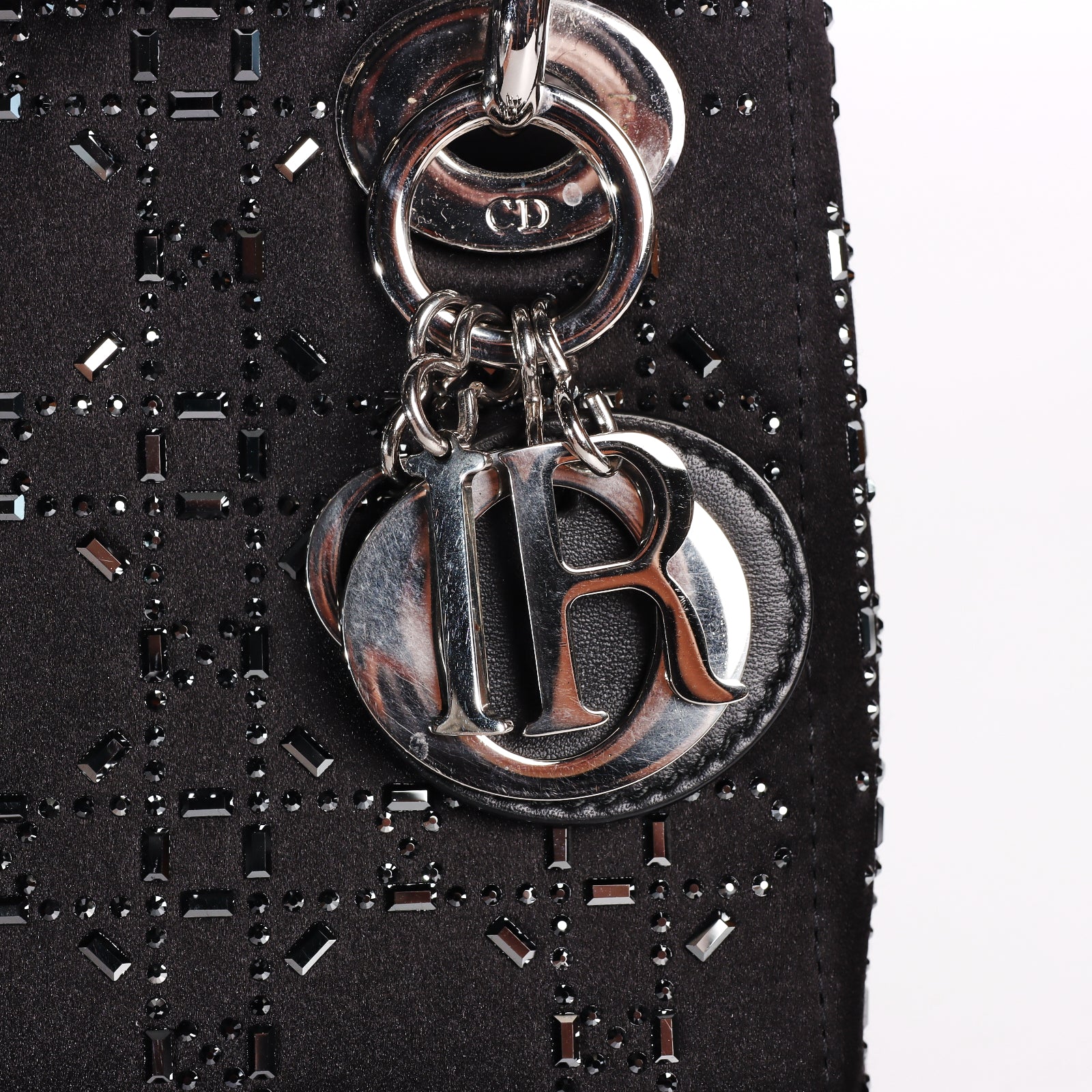 Pre-Owned Christian Dior Lady Dior Medium Black Satin Shoulder Bag 38723244