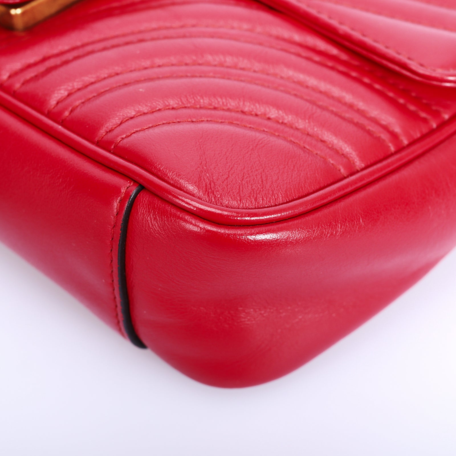 Pre-Owned Gucci GG Marmont Red Calfskin Shoulder Bag 29051589