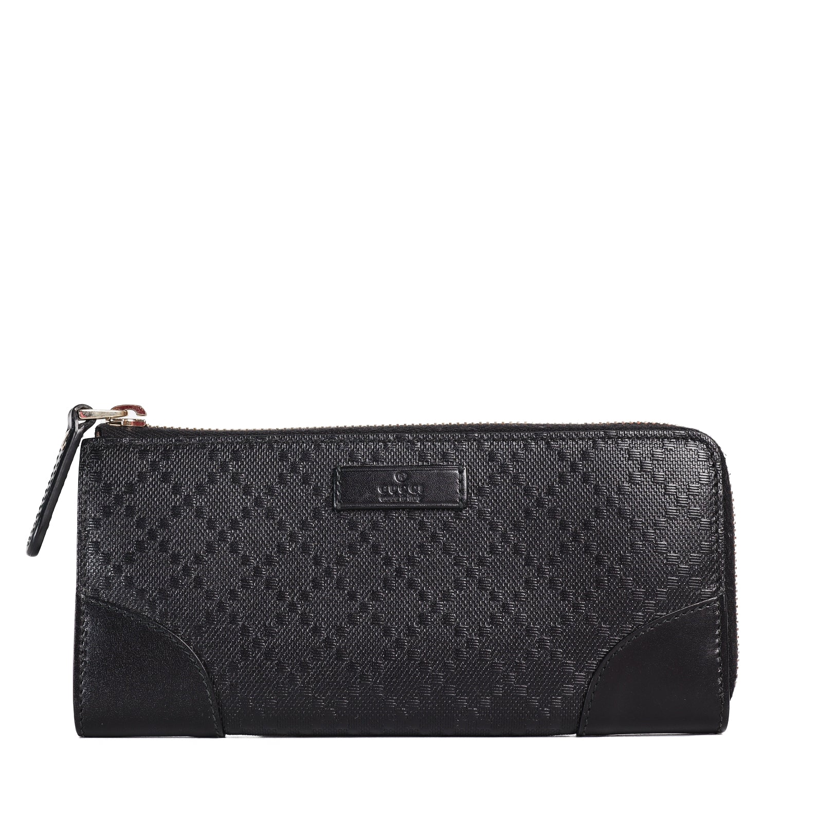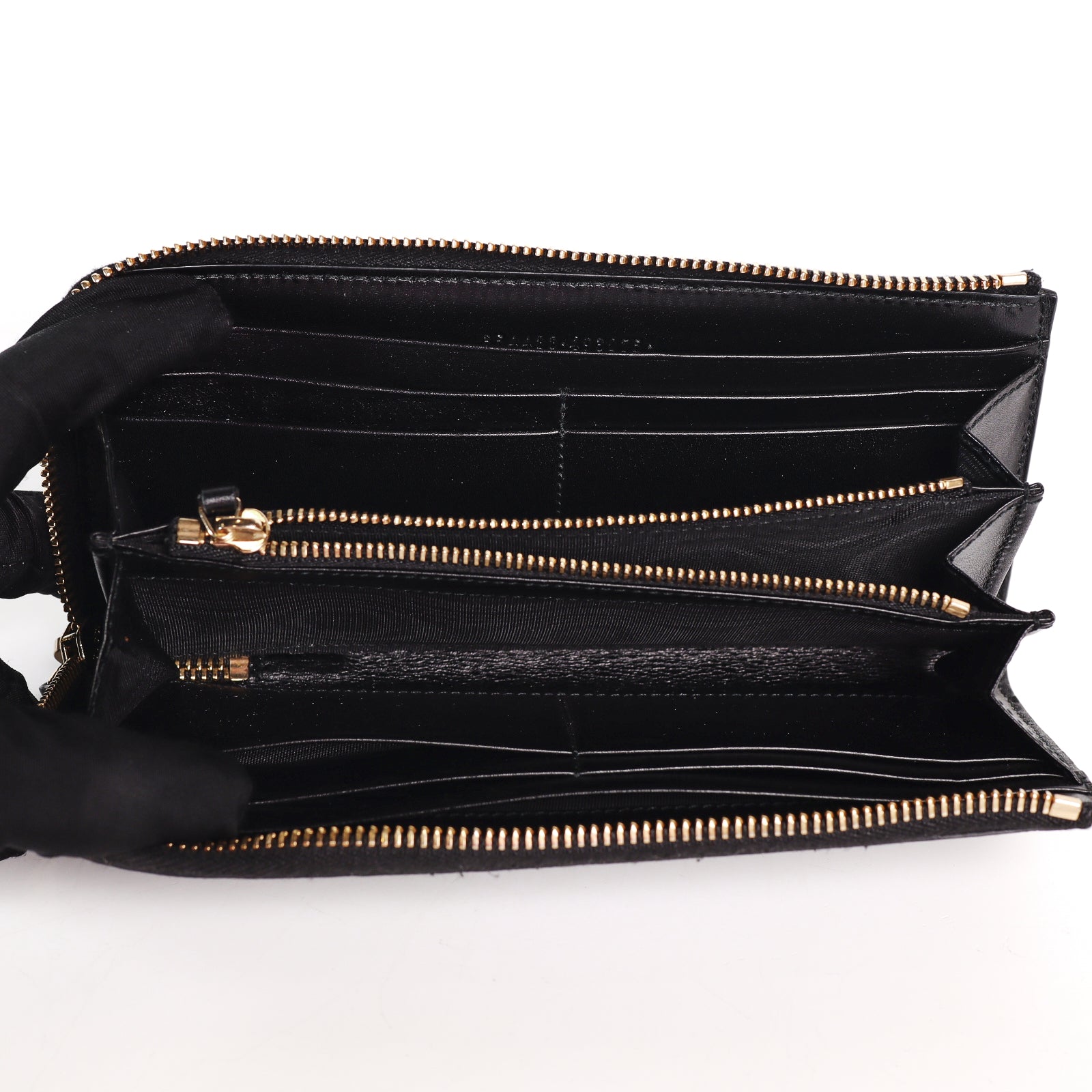 Pre-owned Gucci Zip GG Black Calfskin Long Wallet 11211489