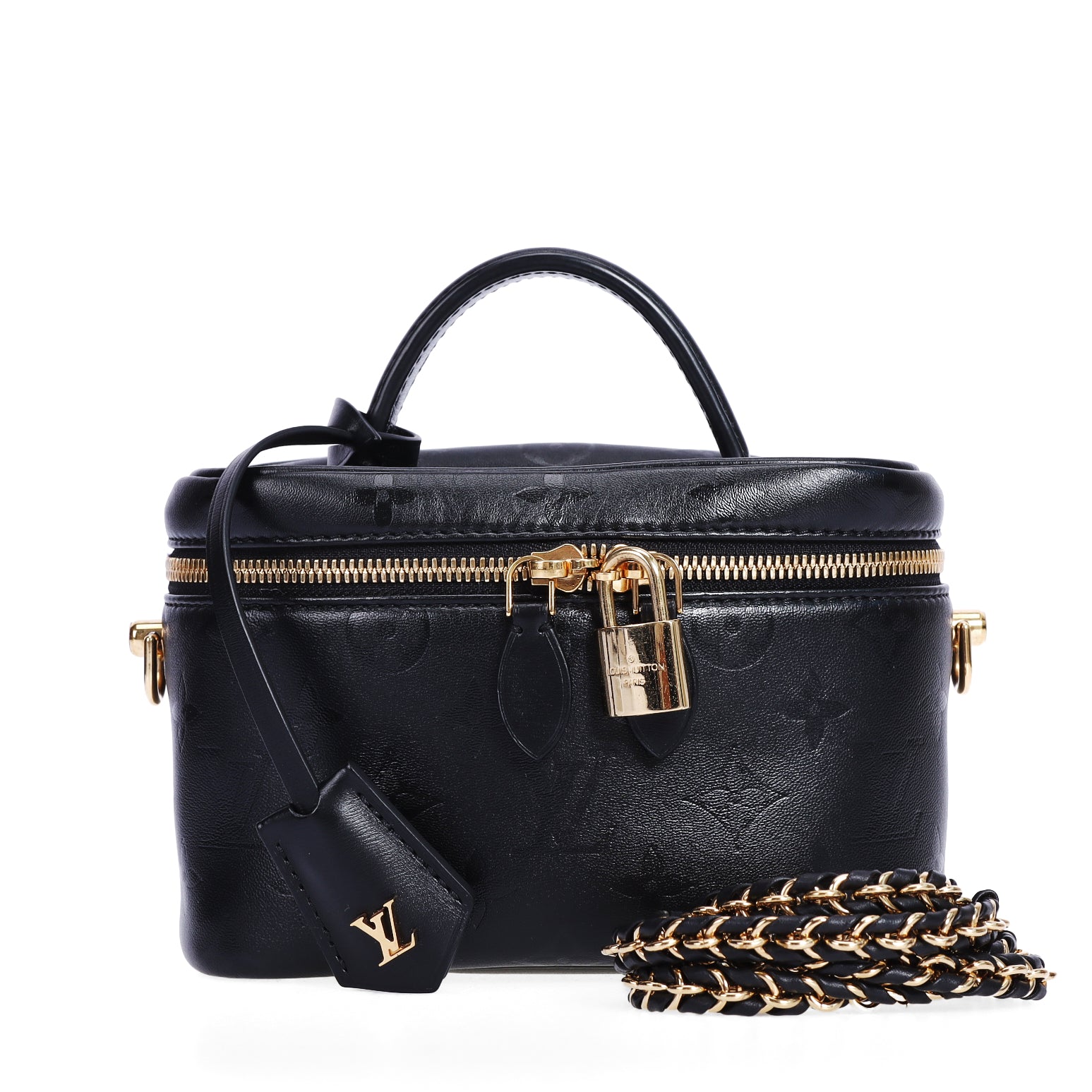 Pre-Owned Louis Vuitton Vanity PM Black Monogram Lambskin Leather Handbag 47793499