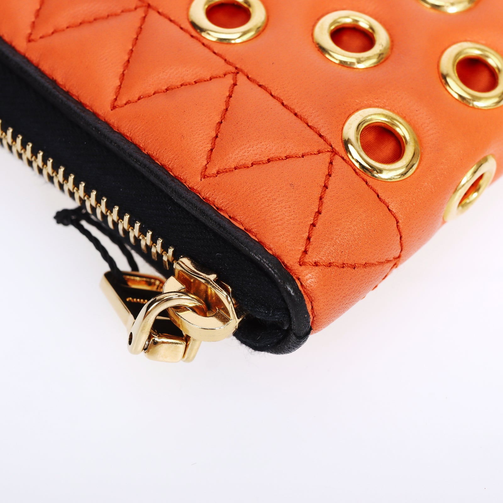 Pre-Owned Miu Miu Matelassé Orange Calfskin Studded Zip-Around Long Wallet 32091519