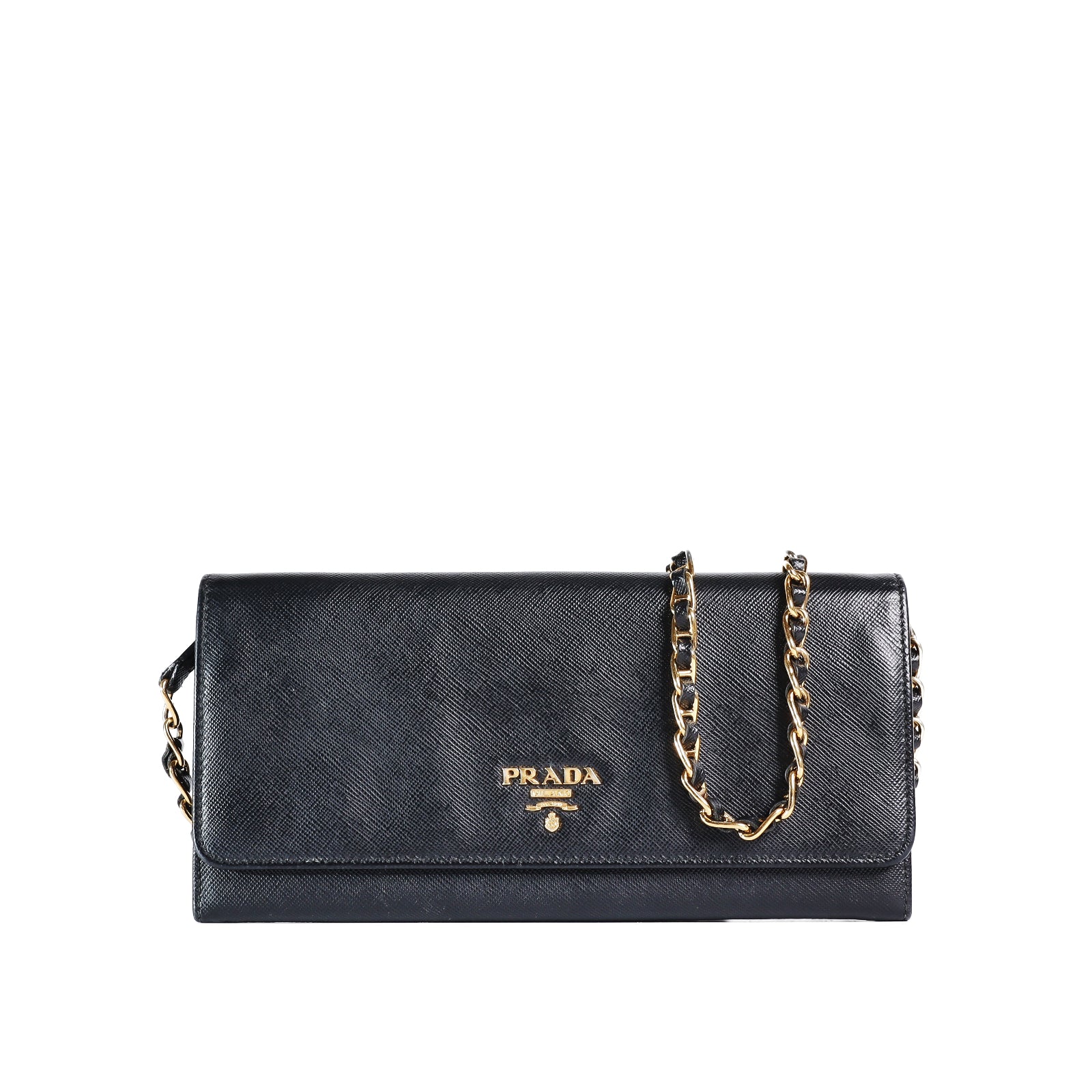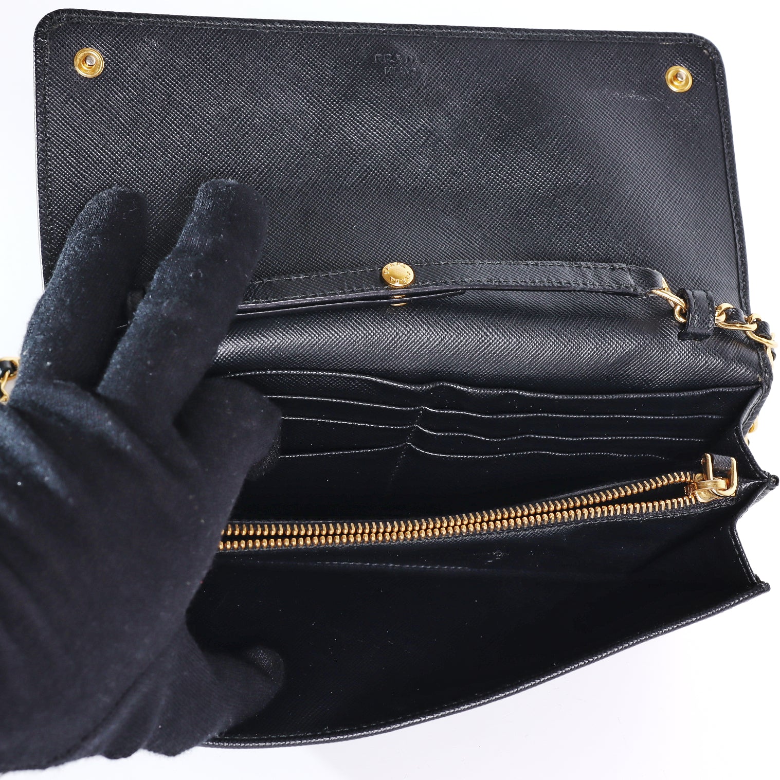 Pre-Owned Prada Black Calfskin Wallet on Chain 96890096