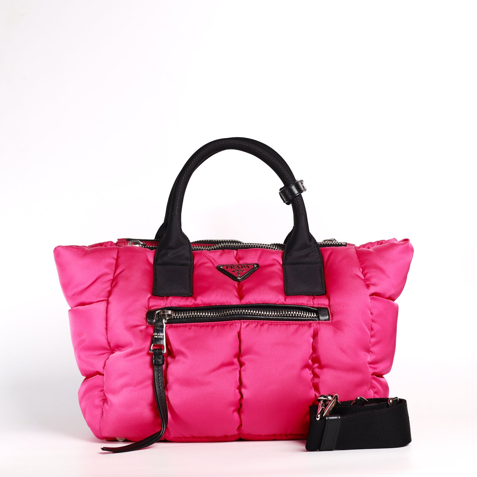 Pre-Owned Prada Tessuto Bomber Fuchsia Nylon Shoulder Bag 85866933 L