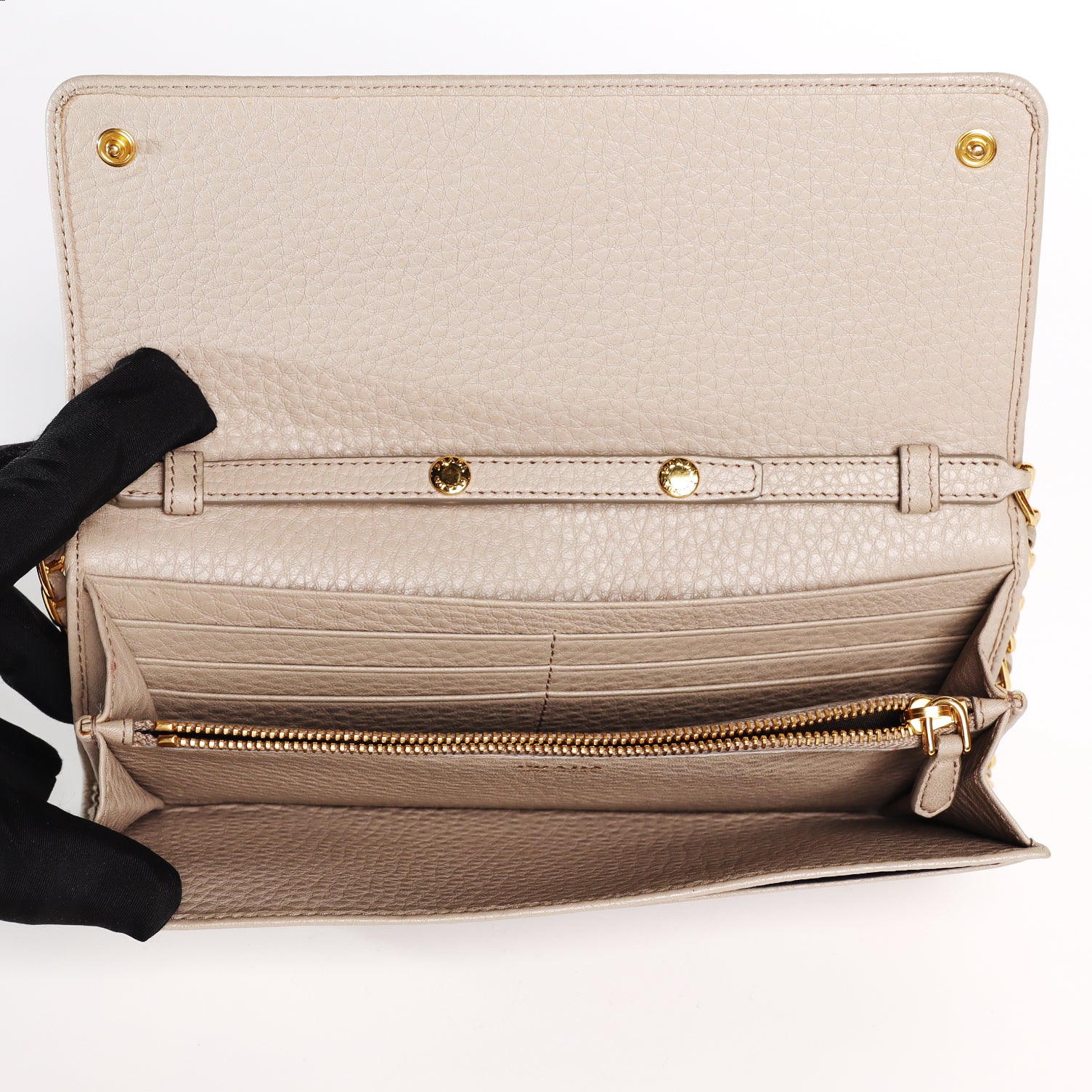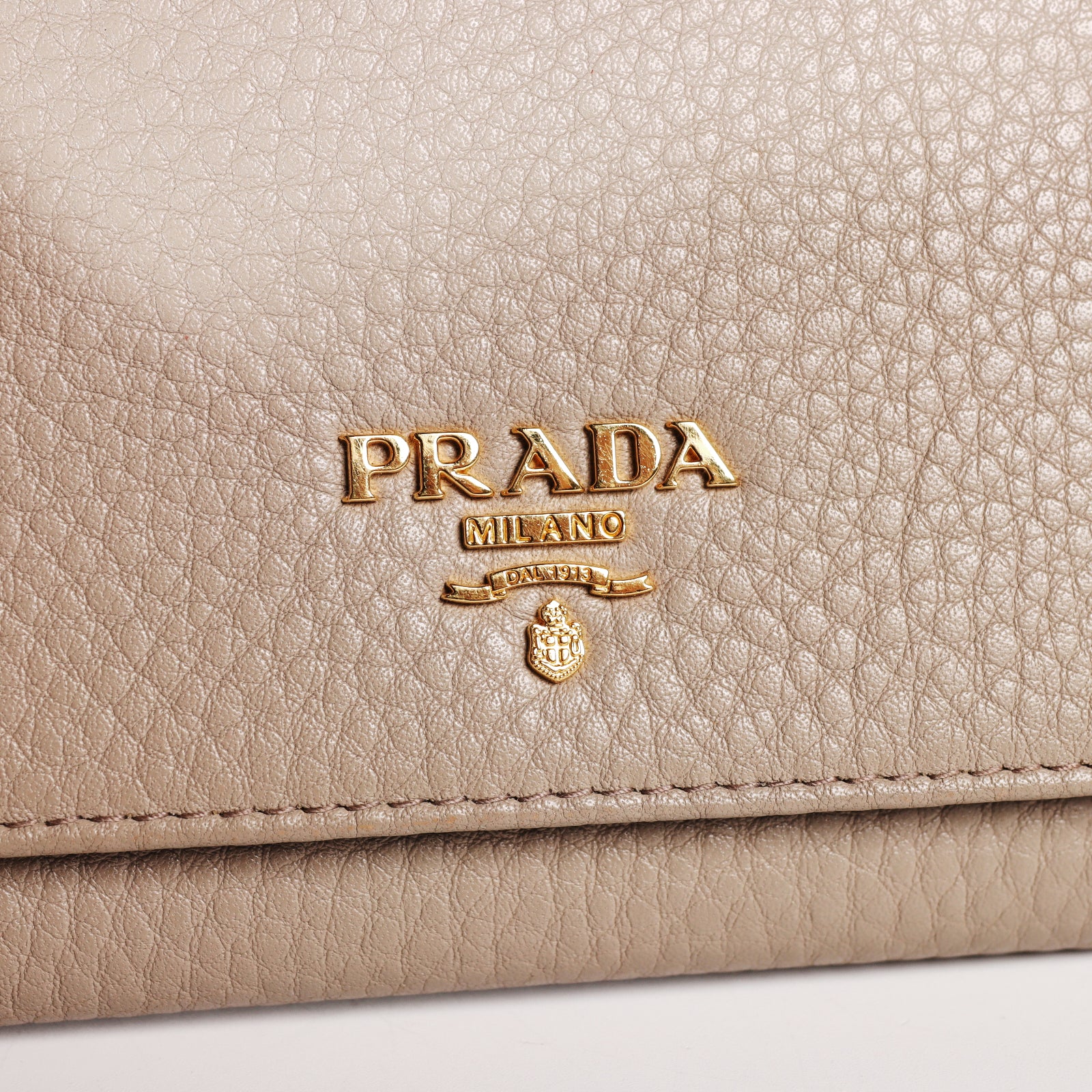 Pre-Owned Prada Vitello Move Gray Calfskin Leather Wallet On Chain 96174232 L