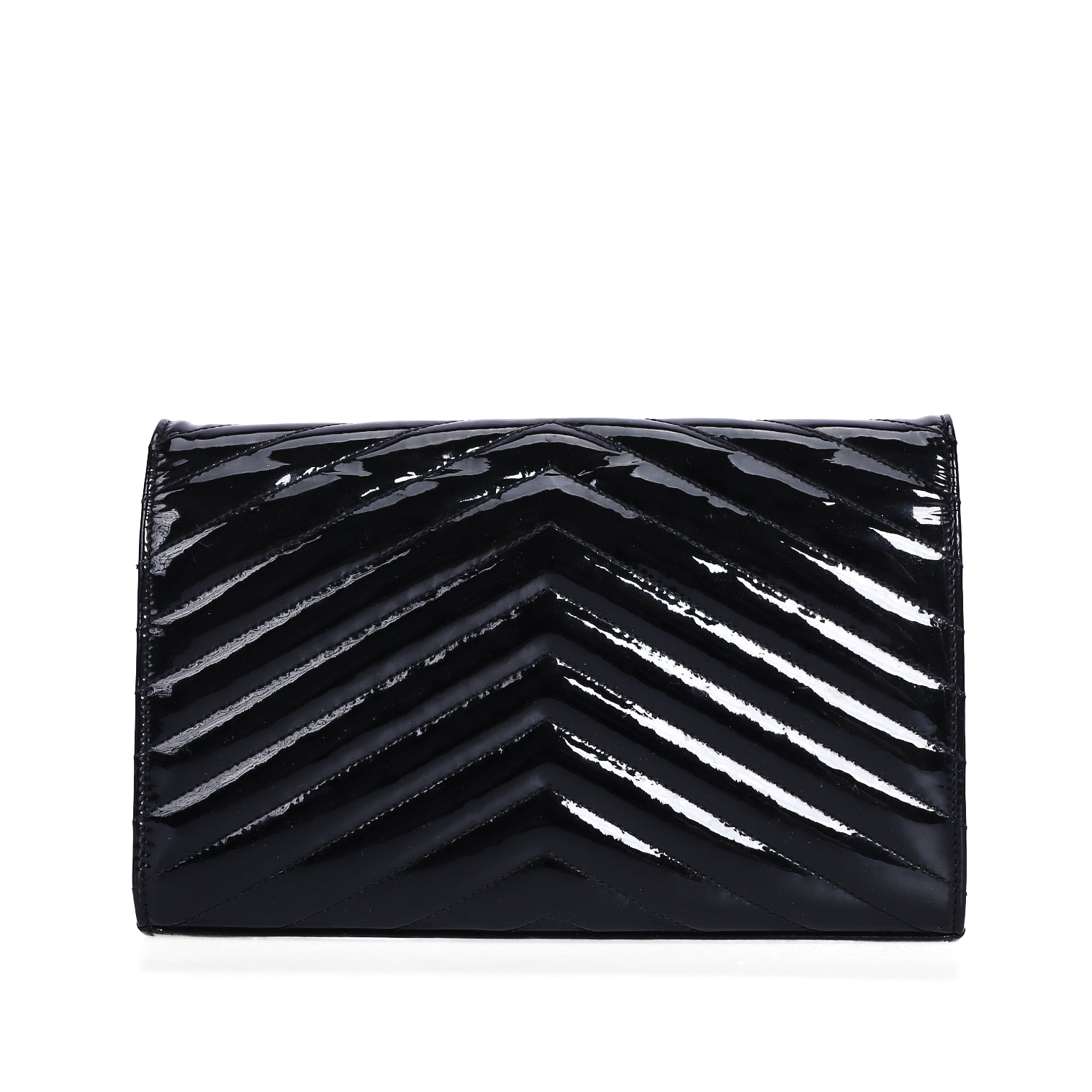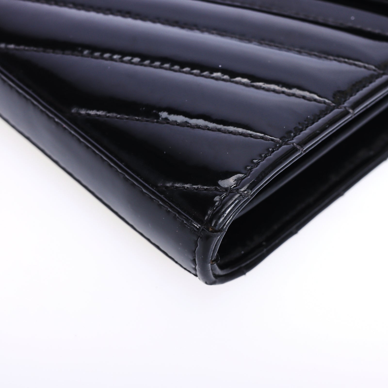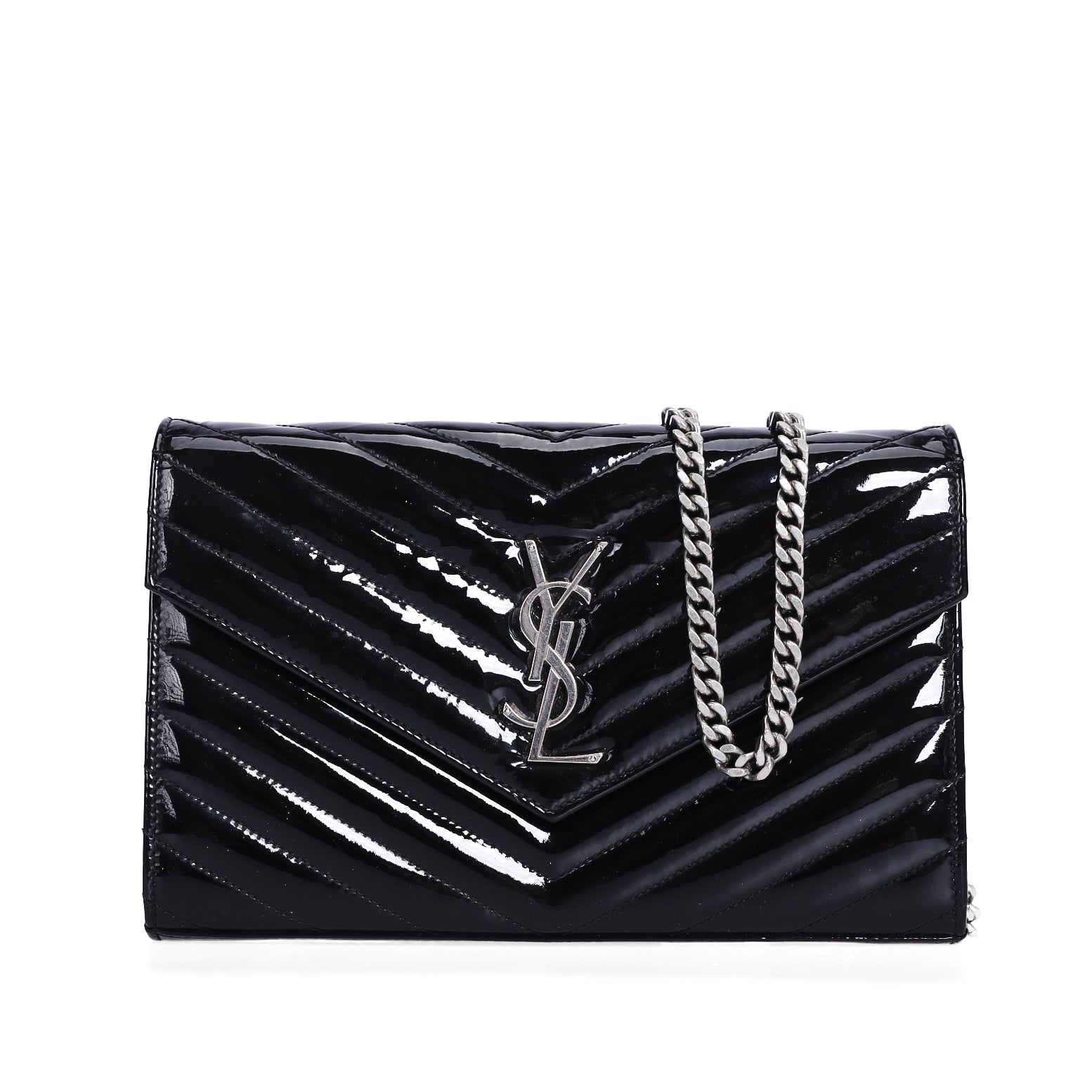 Pre-Owned Saint Laurent Chevron Black Patent Leather Wallet on Chain 32841904