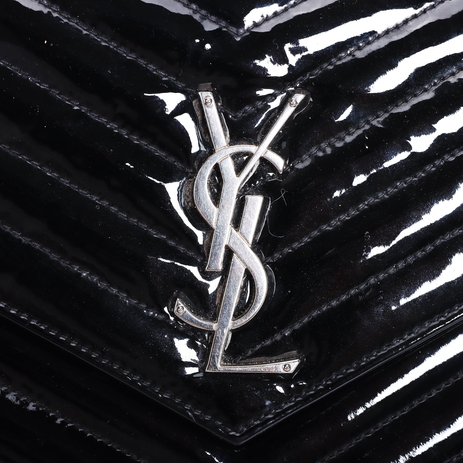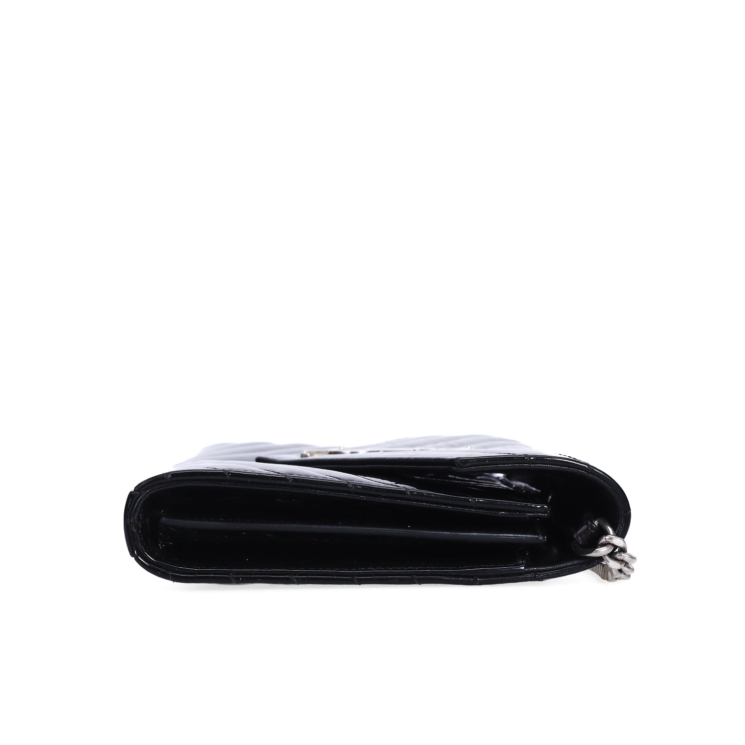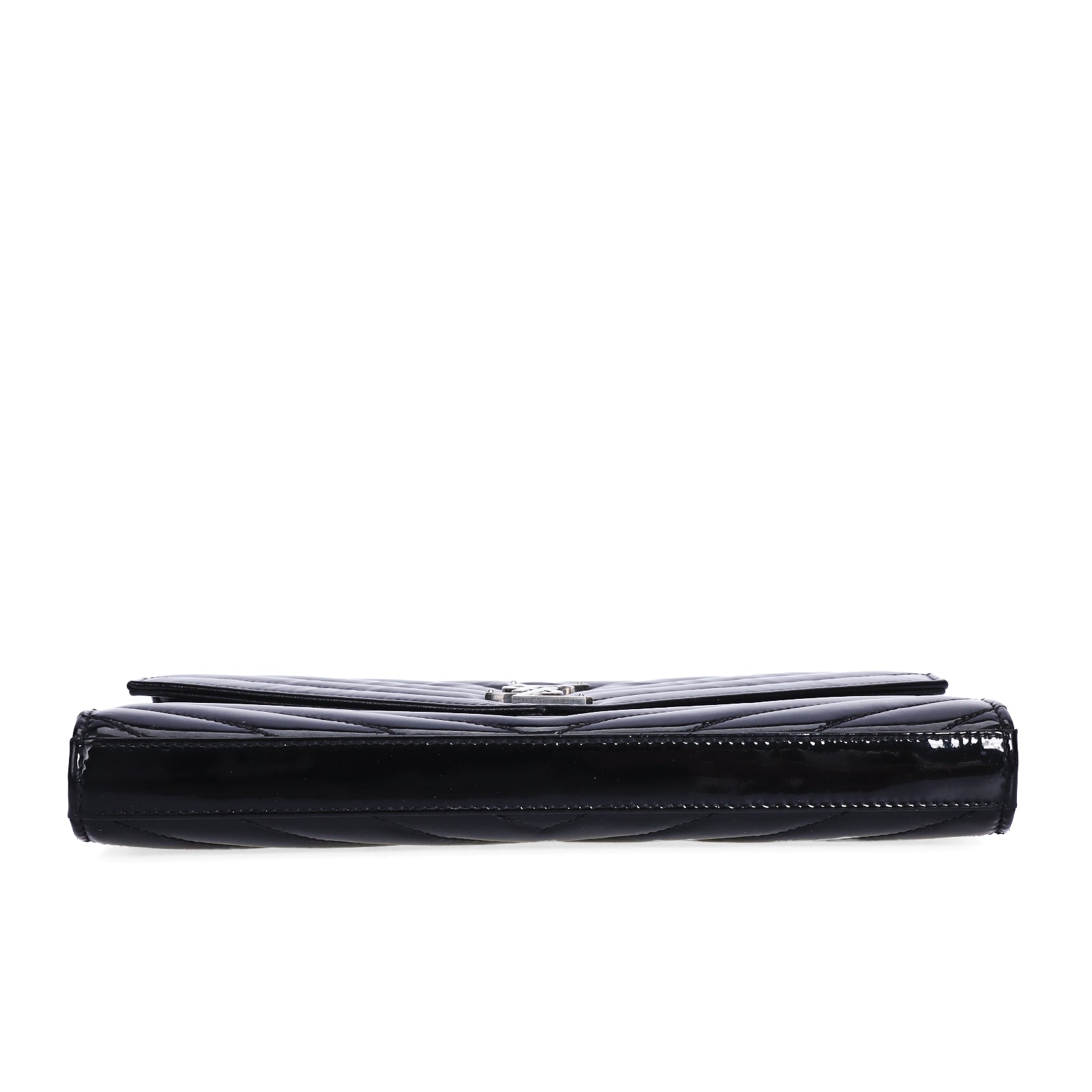 Pre-Owned Saint Laurent Chevron Black Patent Leather Wallet on Chain 32841904