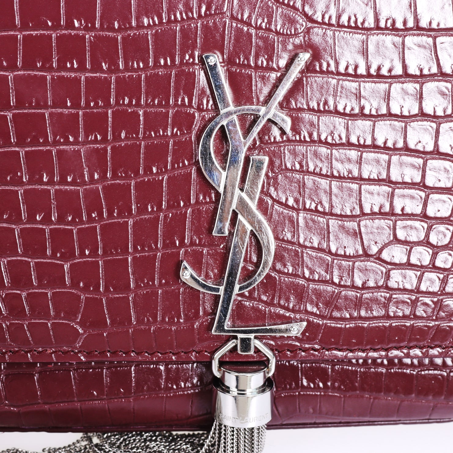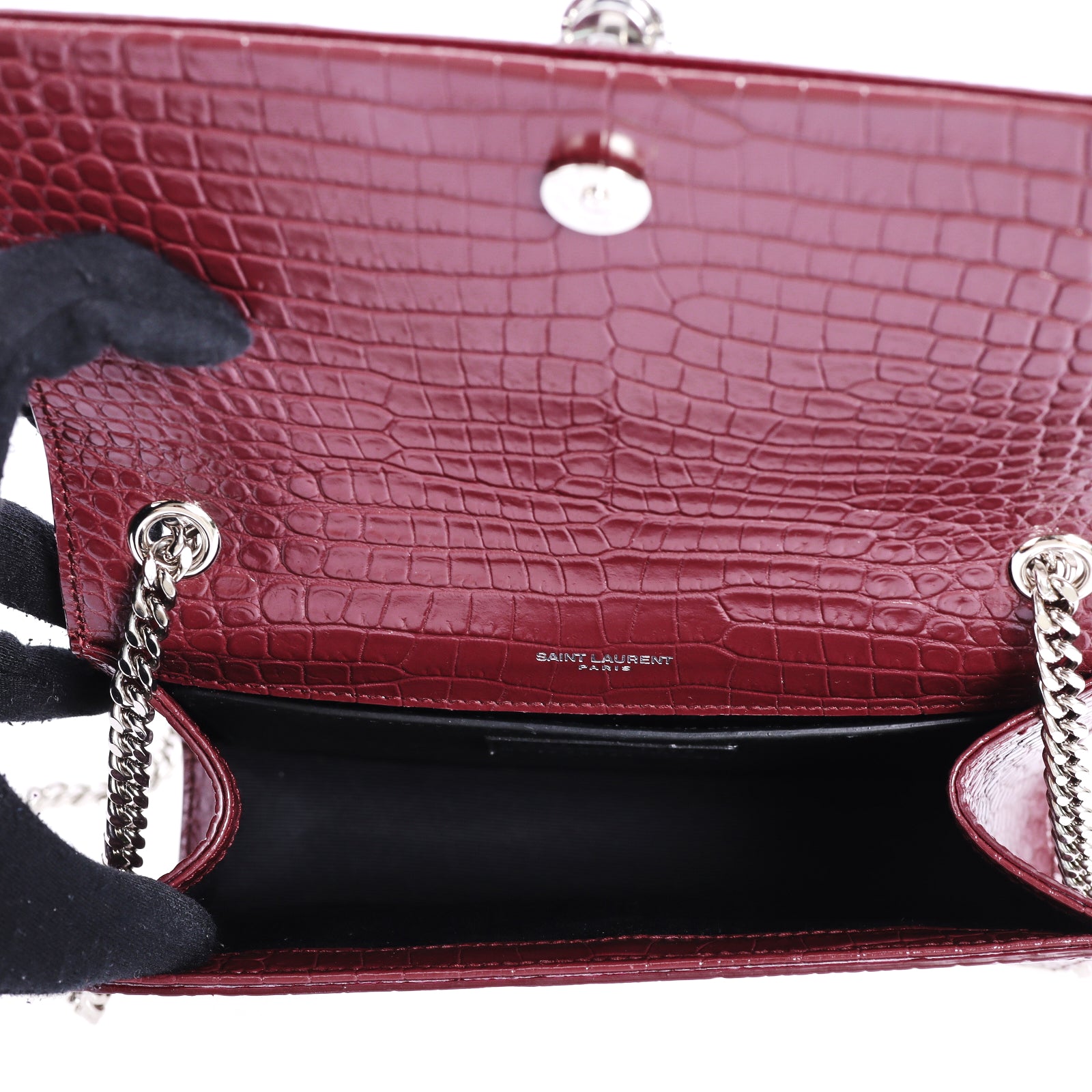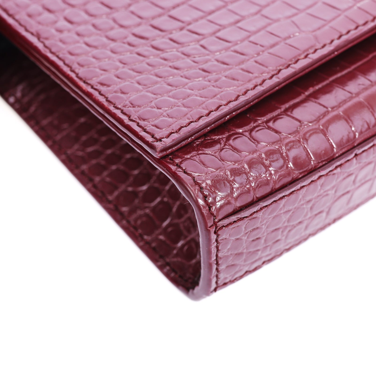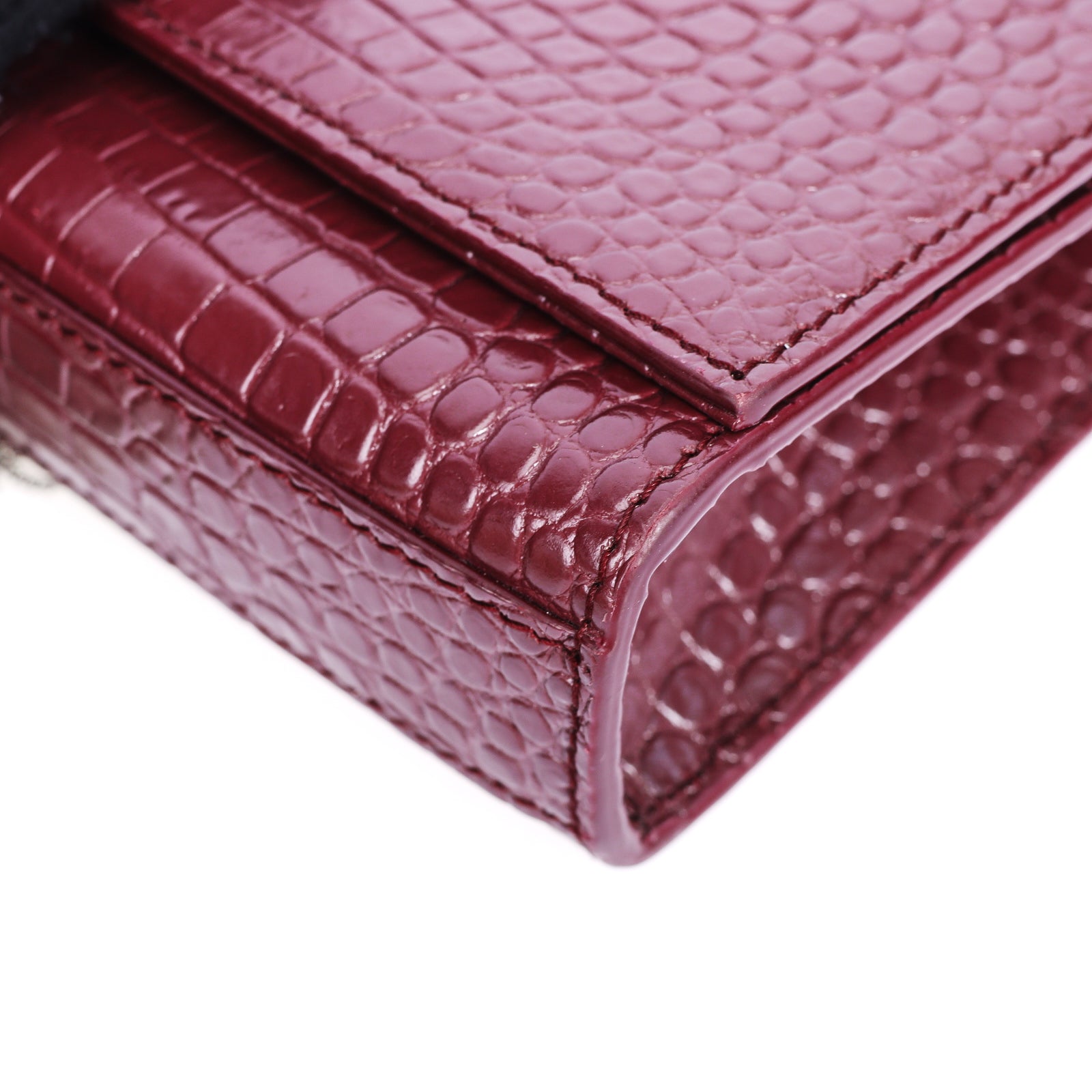 Pre-Owned Saint Laurent Kate Burgundy Monogram Croc-Embossed Calfskin Leather Wallet on Chain70544322