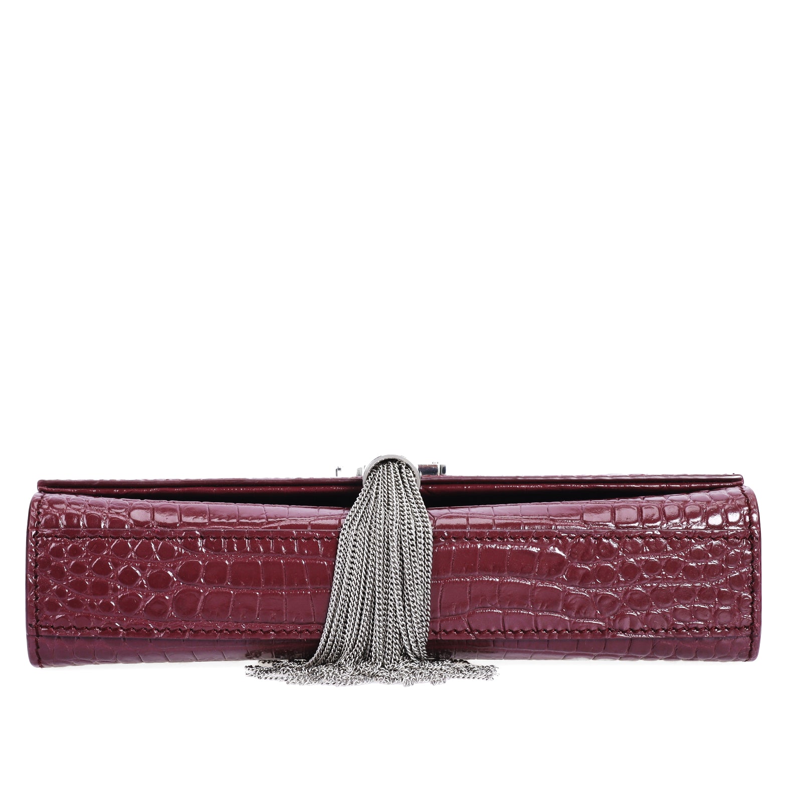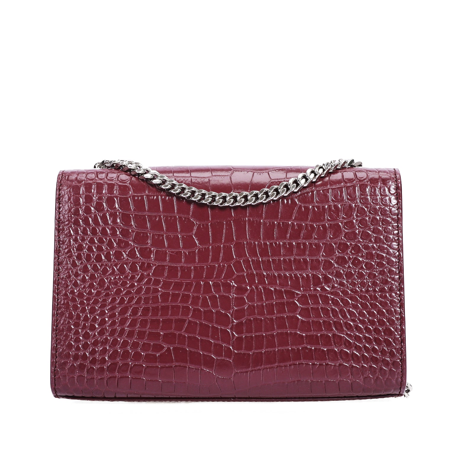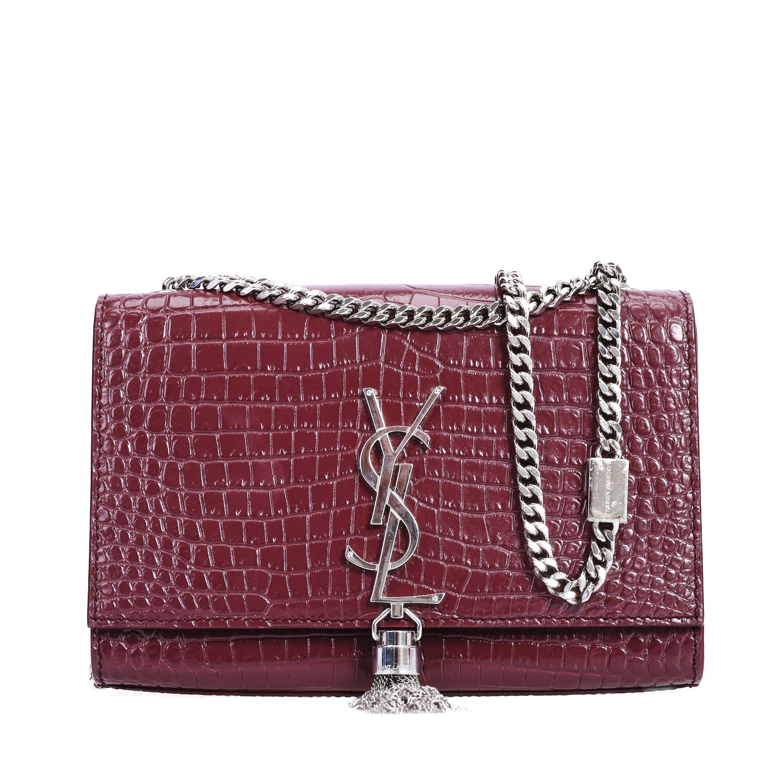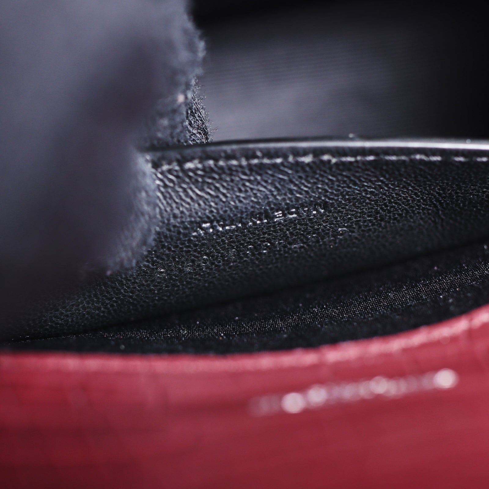 Pre-Owned Saint Laurent Kate Burgundy Monogram Croc-Embossed Calfskin Leather Wallet on Chain70544322