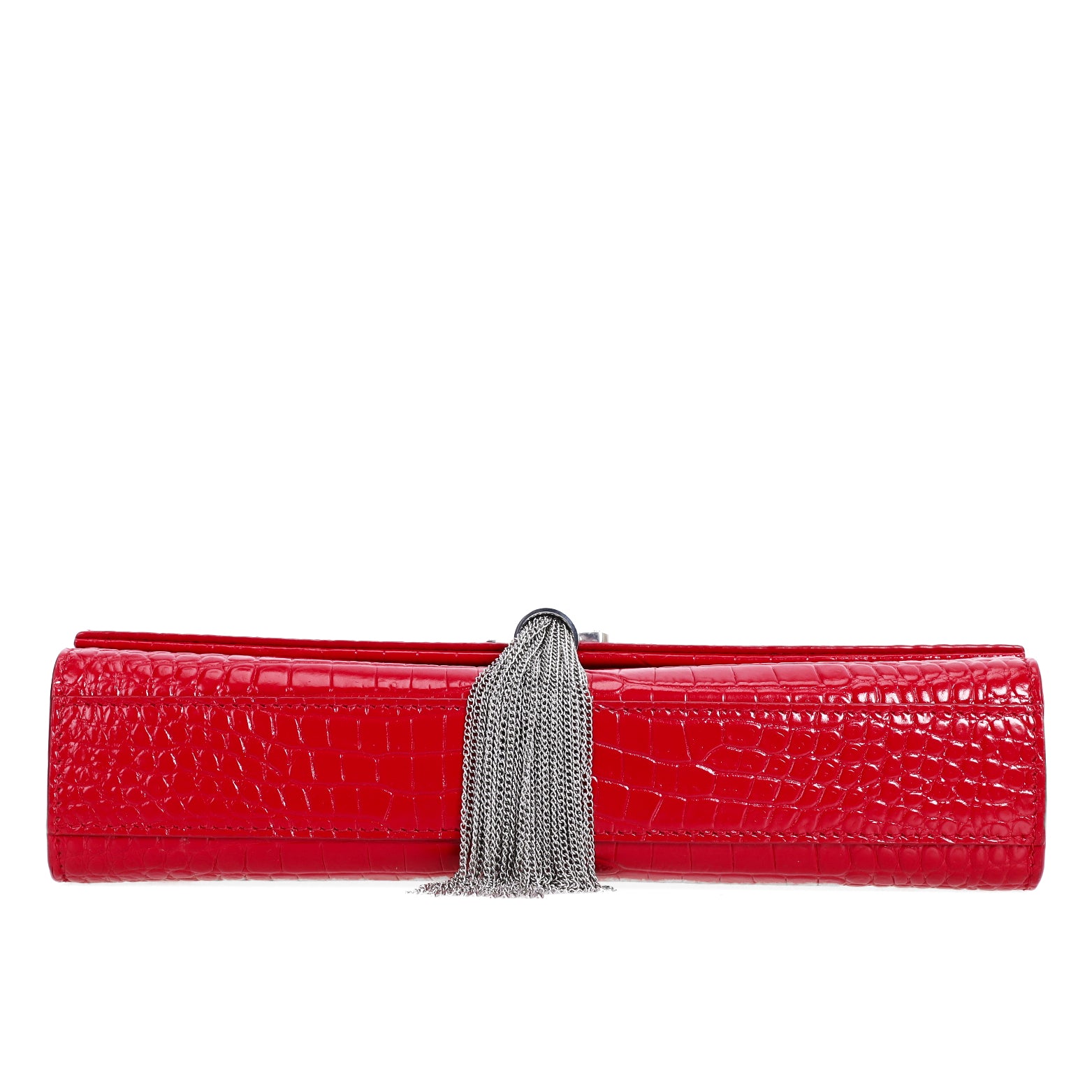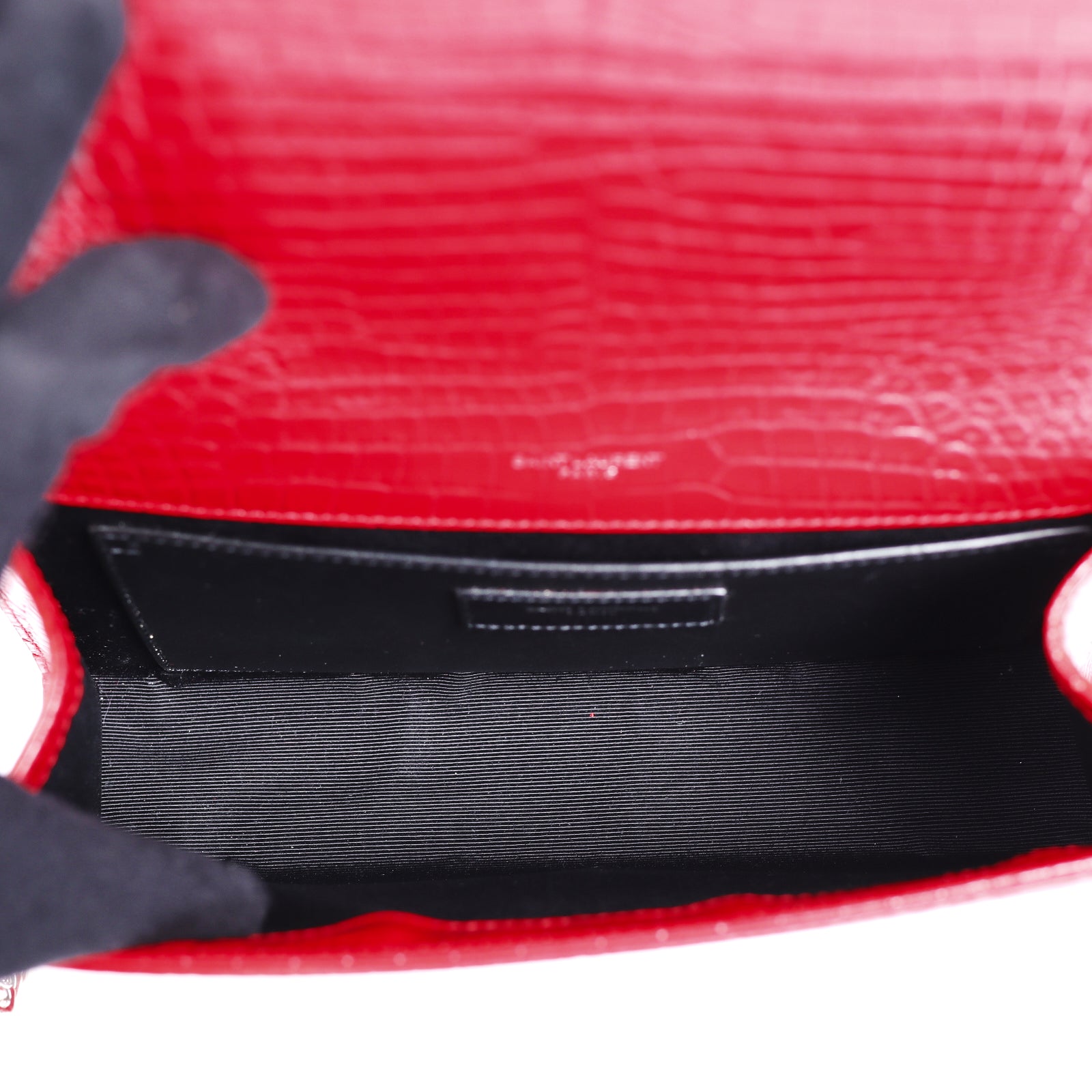 Pre-Owned Saint Laurent Kate Red Croc-Embossed Calfskin Shoulder Bag 11019825L