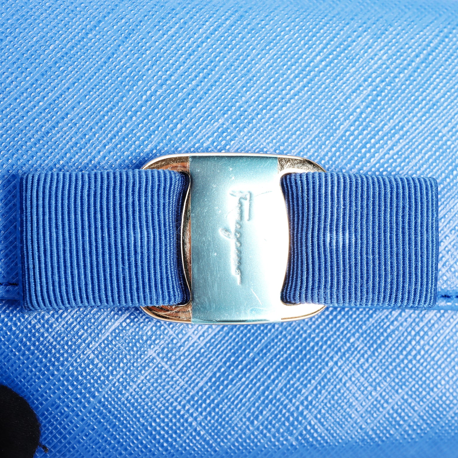 Pre-Owned Salvatore Ferragamo Vara Bow Blue Calfskin Leather Wallet 79843848